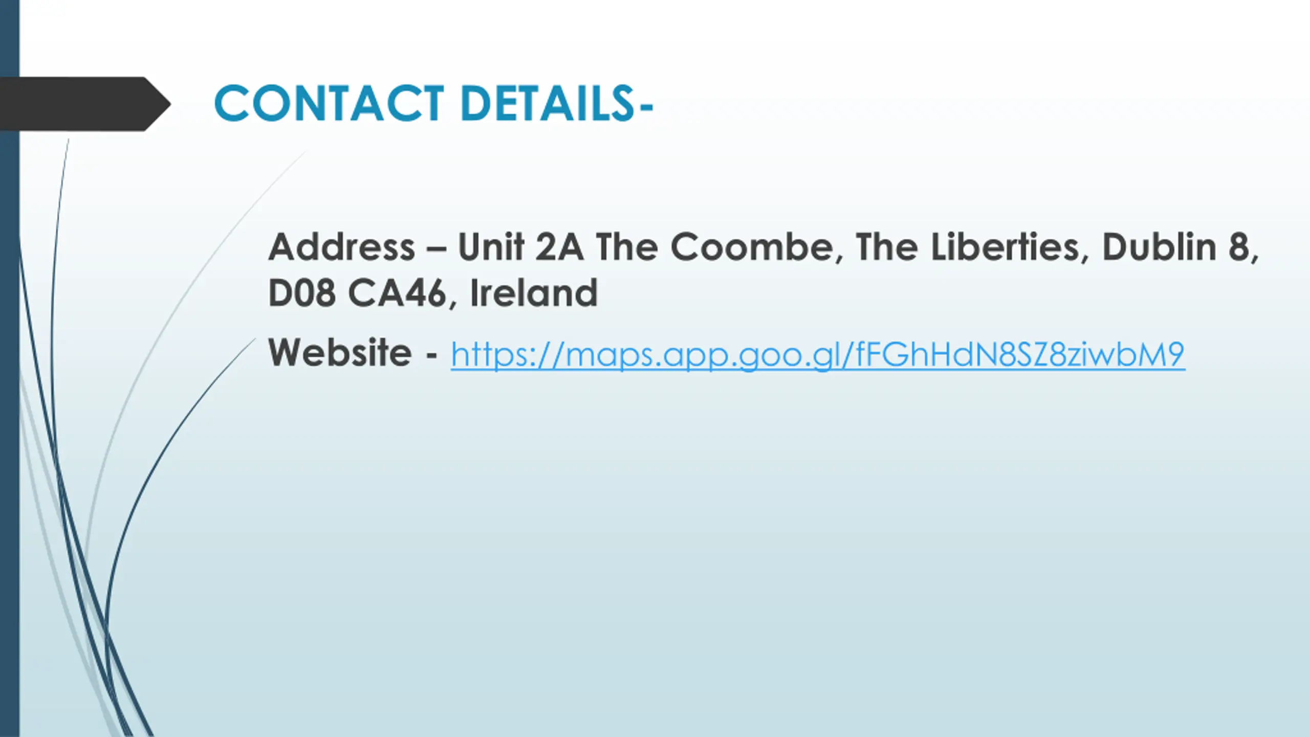 CONTACT DETAILS- Address Unit 2A The Coombe, The Liberties, Dublin 8, D08 CA46, Ireland Website - https://maps.app.goo.gl/fFGhHdN8SZ8ziwbM9