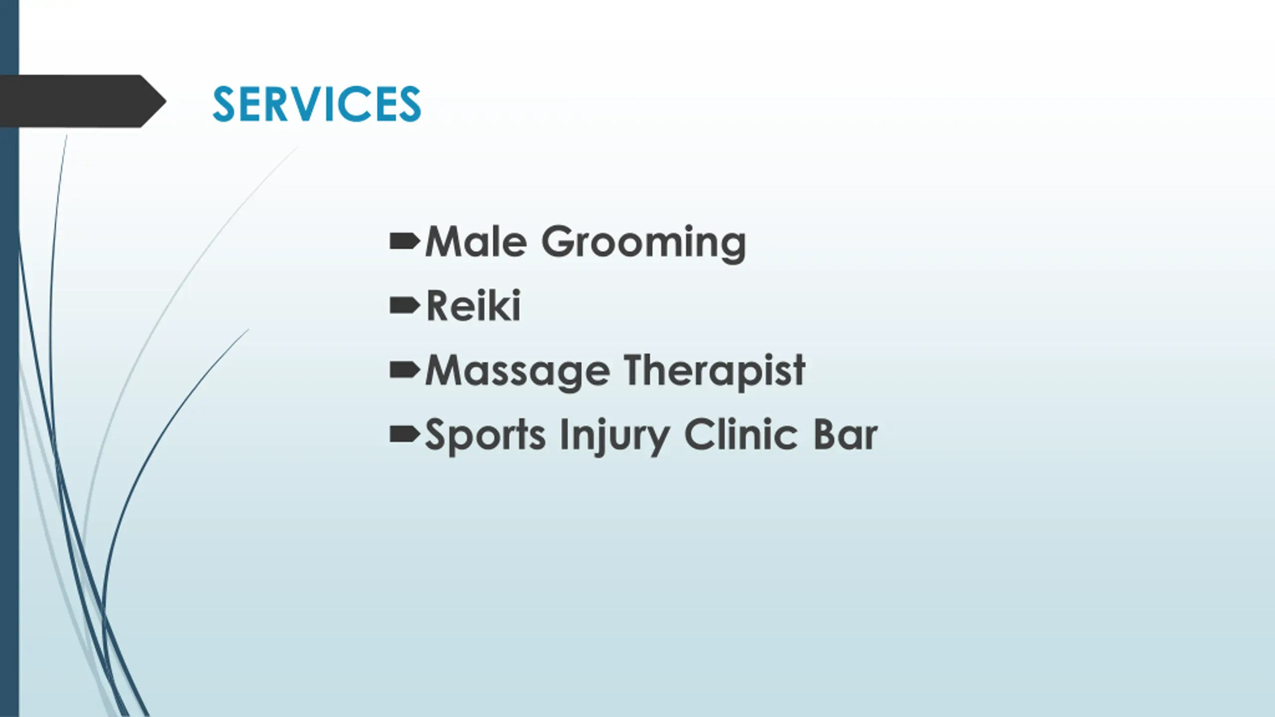 SERVICES Male Grooming Reiki Massage Therapist Sports Injury Clinic Bar