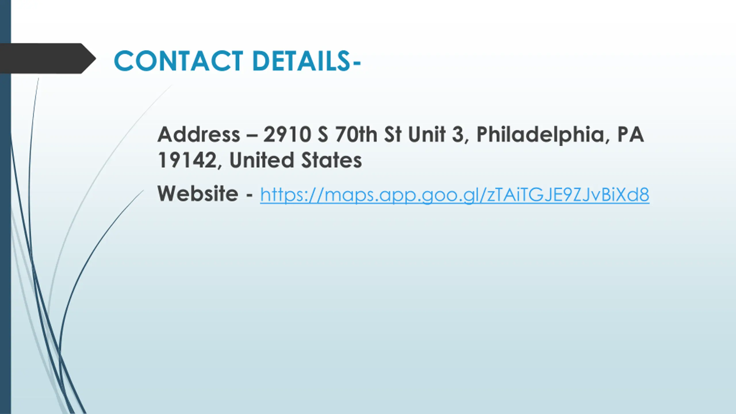 CONTACT DETAILS- Address 2910 S 70th St Unit 3, Philadelphia, PA 19142, United States Website - https://maps.app.goo.gl/zTAiTGJE9ZJvBiXd8