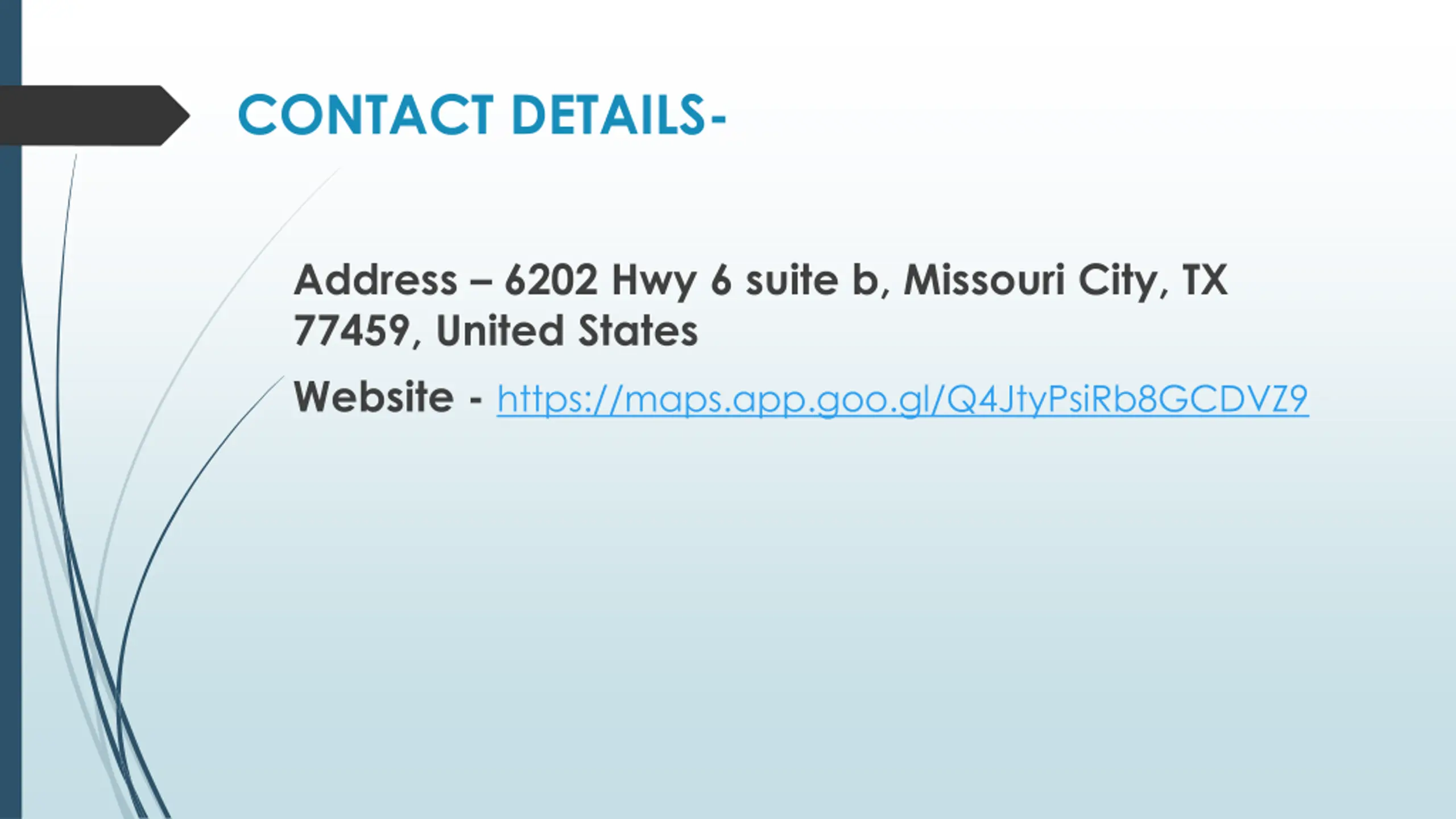 CONTACT DETAILS- Address 6202 Hwy 6 suite b, Missouri City, TX 77459, United States Website - https://maps.app.goo.gl/Q4JtyPsiRb8GCDVZ9
