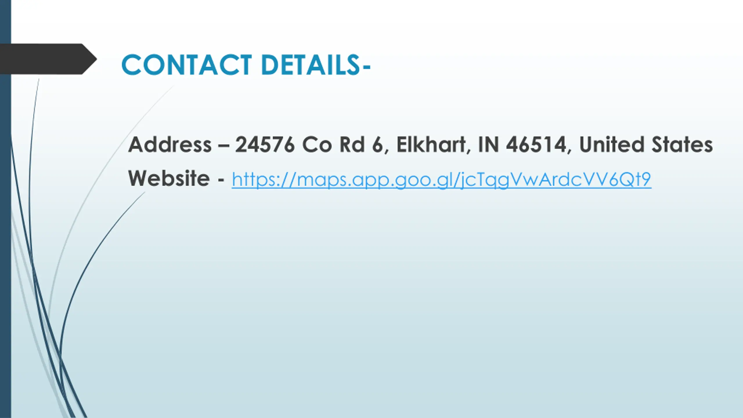 CONTACT DETAILS- Address 24576 Co Rd 6, Elkhart, IN 46514, United States Website - https://maps.app.goo.gl/jcTqgVwArdcVV6Qt9