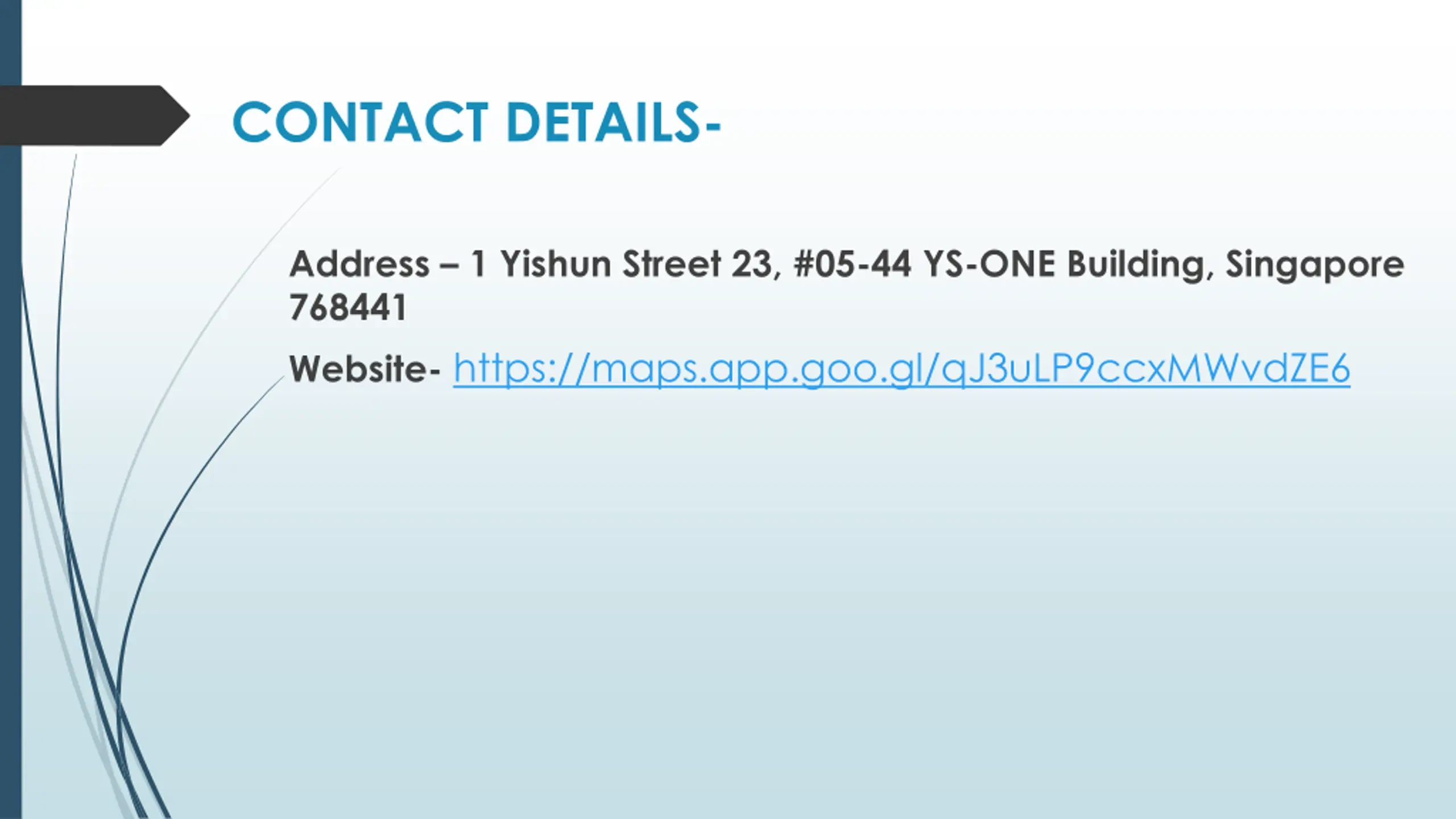 CONTACT DETAILS- Address 1 Yishun Street 23, #05-44 YS-ONE Building, Singapore 768441 Website- https://maps.app.goo.gl/qJ3uLP9ccxMWvdZE6