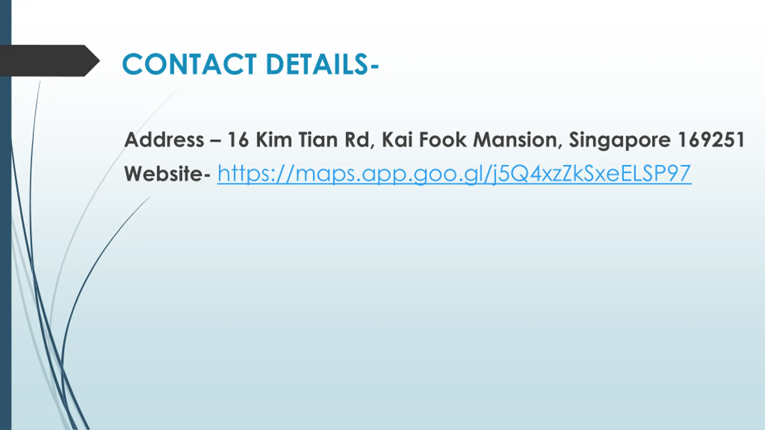 CONTACT DETAILS- Address 16 Kim Tian Rd, Kai Fook Mansion, Singapore 169251 Website- https://maps.app.goo.gl/j5Q4xzZkSxeELSP97