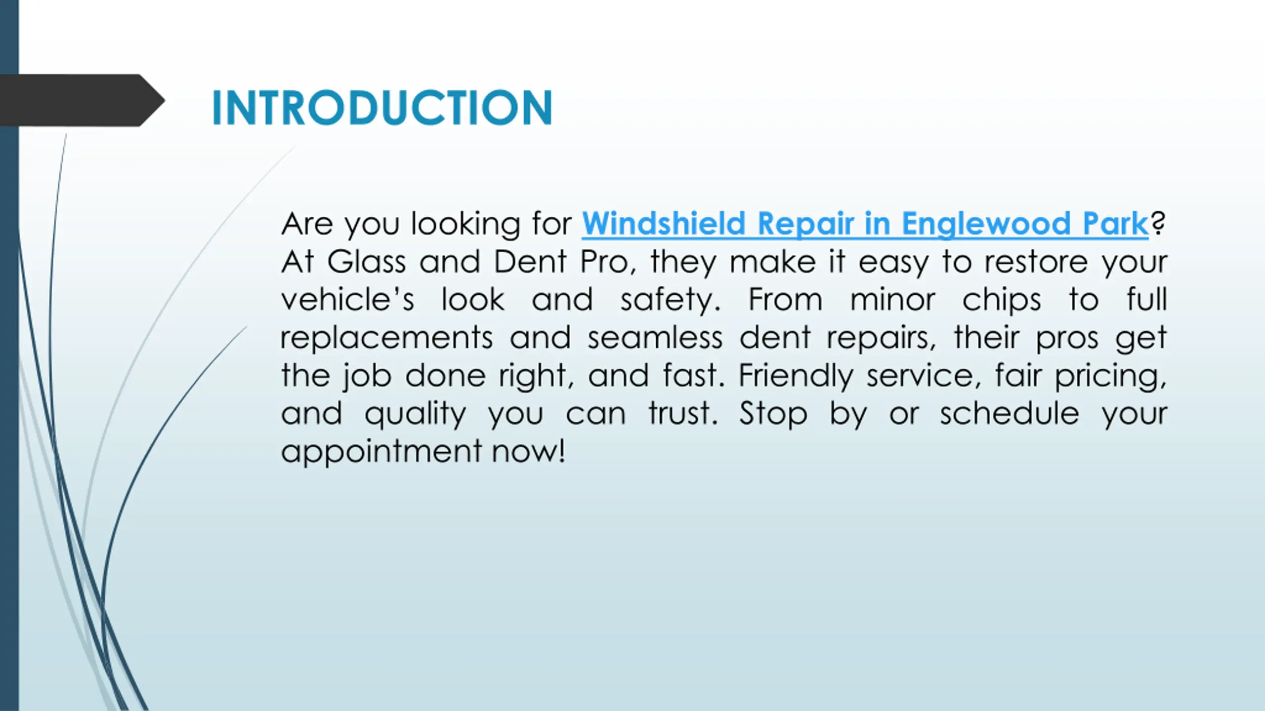 INTRODUCTION Are you looking for Windshield Repair in Englewood Park? At Glass and Dent Pro, they make it easy to restore your vehicle s look and safety. From minor chips to full replacements and seamless dent repairs, their pros get the job done right, and fast. Friendly service, fair pricing, and quality you can trust. Stop by or schedule your appointment now! Are you looking for Windshield Repair in Englewood Park? At Glass and Dent Pro, they make it easy to restore your vehicle s look and safety. From minor chips to full replacements and seamless dent repairs, their pros get the job done right, and fast. Friendly service, fair pricing, and quality you can trust. Stop by or schedule your appointment now!