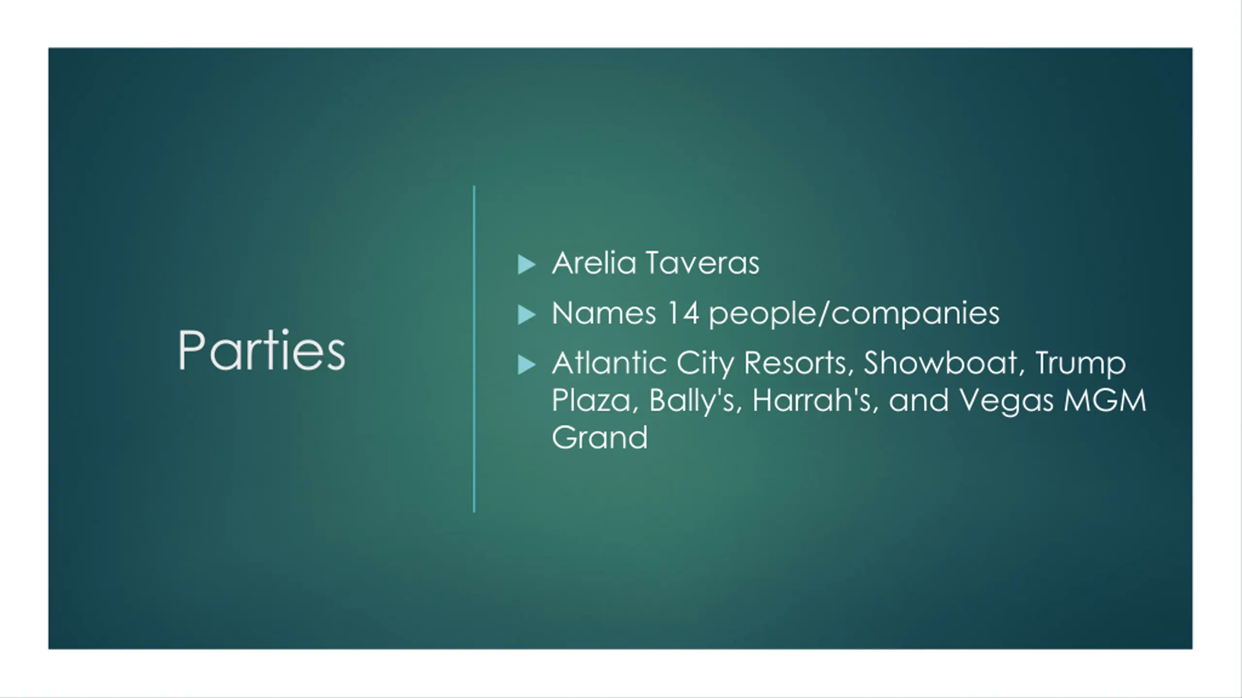 Arelia Taveras Names 14 people/companies Atlantic City Resorts, Showboat, Trump Plaza, Bally's, Harrah's, and Vegas MGM Grand Parties