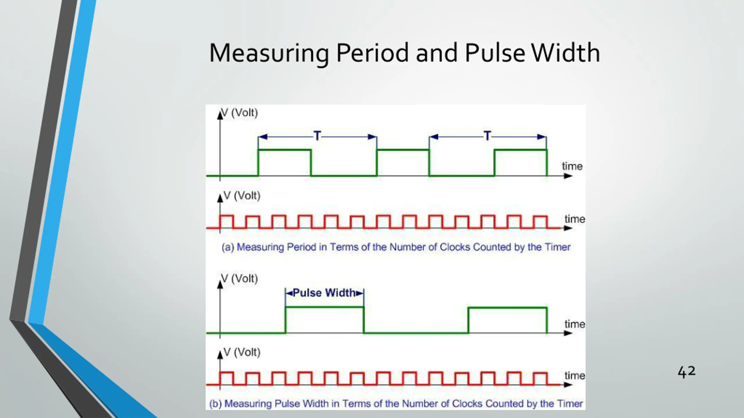 Choosing the Capture Edge ELSB ELSA Capture mode 0 0 Channel disabled 0 1 Capture on rising edge 1 0 Capture on falling edge 1 1 Capture on both edges 41