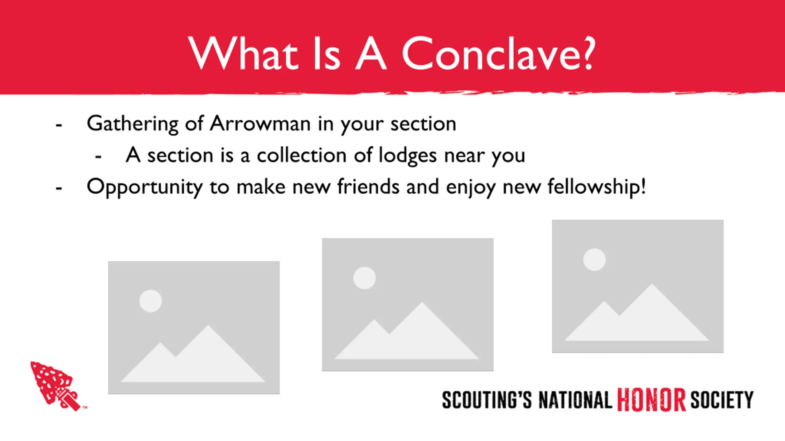 What Is A Conclave? - Gathering of Arrowman in your section - A section is a collection of lodges near you Opportunity to make new friends and enjoy new fellowship! -