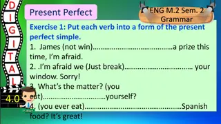 Articles such as "a, an, the" help indicate specificity in nouns, while the present perfect tense is used to describe actions linking past and present. Learn how to correctly use articles and form questions in the present perfect tense.