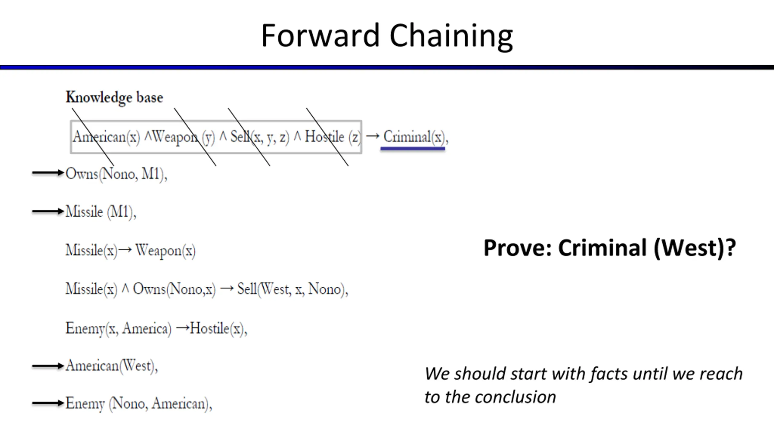 Forward Chaining Prove: Criminal (West)? We should start with facts until we reach to the conclusion
