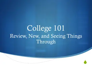 MUSIC AUDITIONS Deadlines for Music auditions may be earlier Deadlines for Music auditions may be earlier Tend to be in February, though many schools have earlier dates Tend to be in February, though many schools have earlier dates Piano, voice, and sometimes other programs have a Pre Piano, voice, and sometimes other programs have a Pre- -screening requirement, prior to auditions prior to auditions Regional auditions are sometimes available Regional auditions are sometimes available Videos are accepted, live auditions preferred Videos are accepted, live auditions preferred Best way to get rejected is to ignore the Audition requirements Best way to get rejected is to ignore the Audition requirements Colleges are lazy, they won t change their Colleges are lazy, they won t change their audition requirements Year, students can look them up now to see what will be required by mid Year, students can look them up now to see what will be required by mid- -senior year year Need to be able to read music Need to be able to read music there is usually an entrance music theory test to there is usually an entrance music theory test to weed out non weed out non- -readers readers screening requirement, audition requirements from Year to from Year to senior