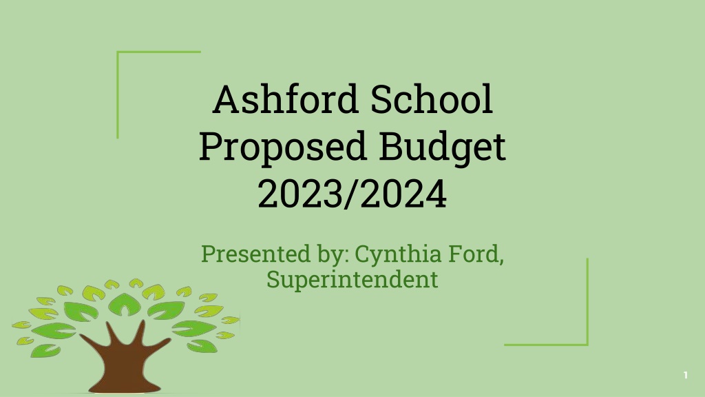Ashford School Proposed Budget 2023/2024 Presented by: Cynthia Ford, Superintendent 1