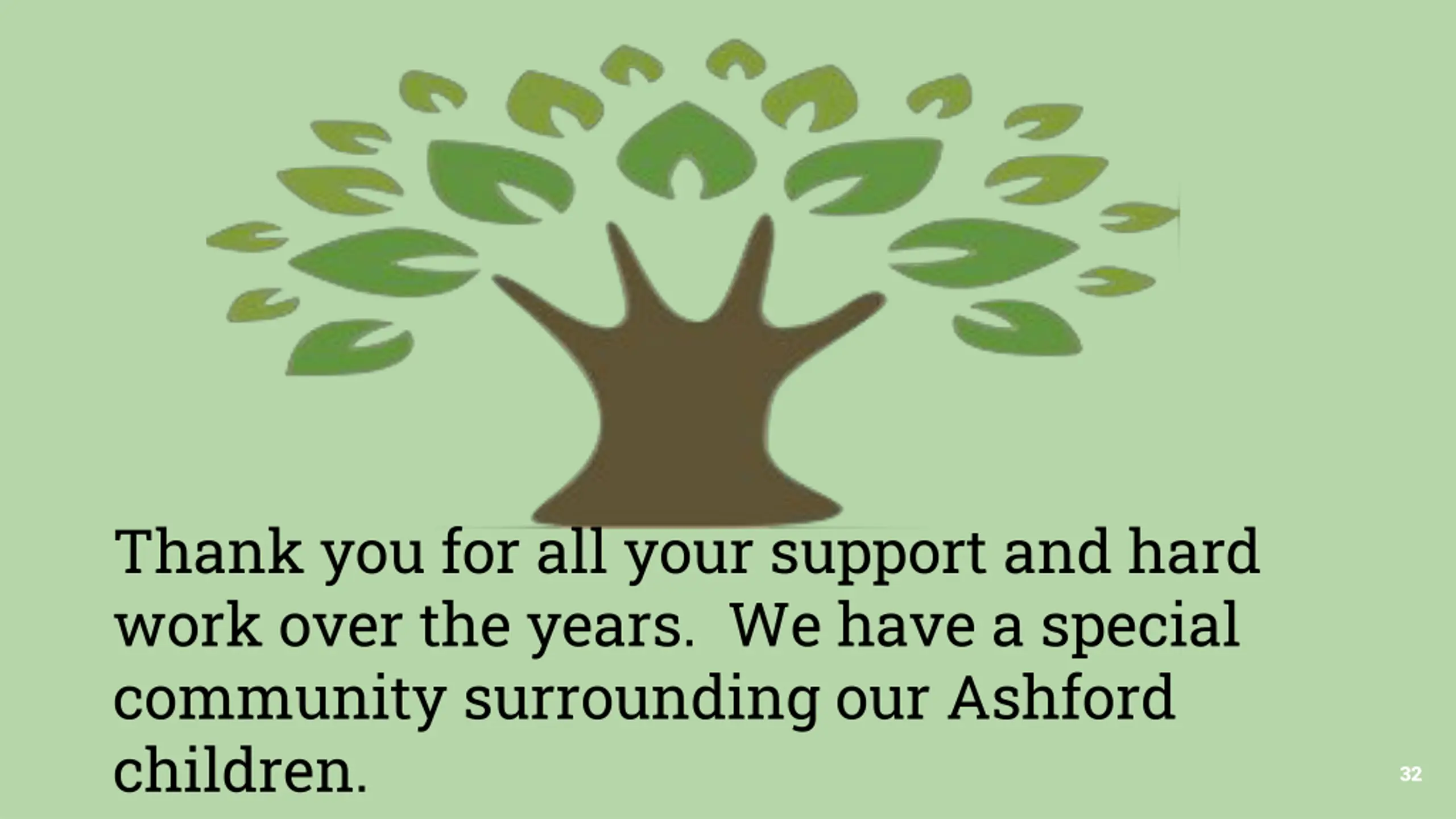 Thank you for all your support and hard work over the years. We have a special community surrounding our Ashford children. 32