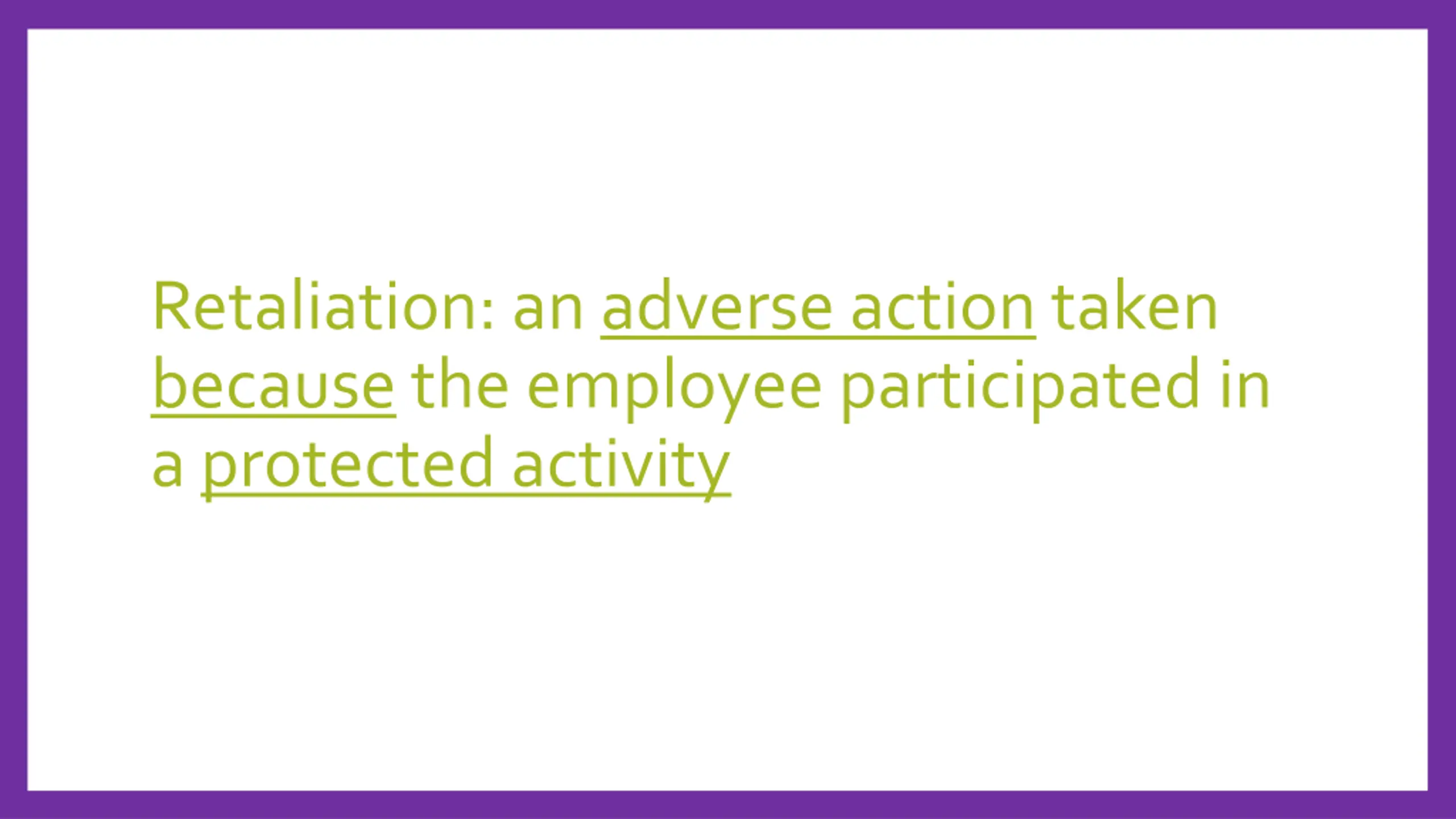 Retaliation: an adverseaction taken because the employee participated in a protected activity