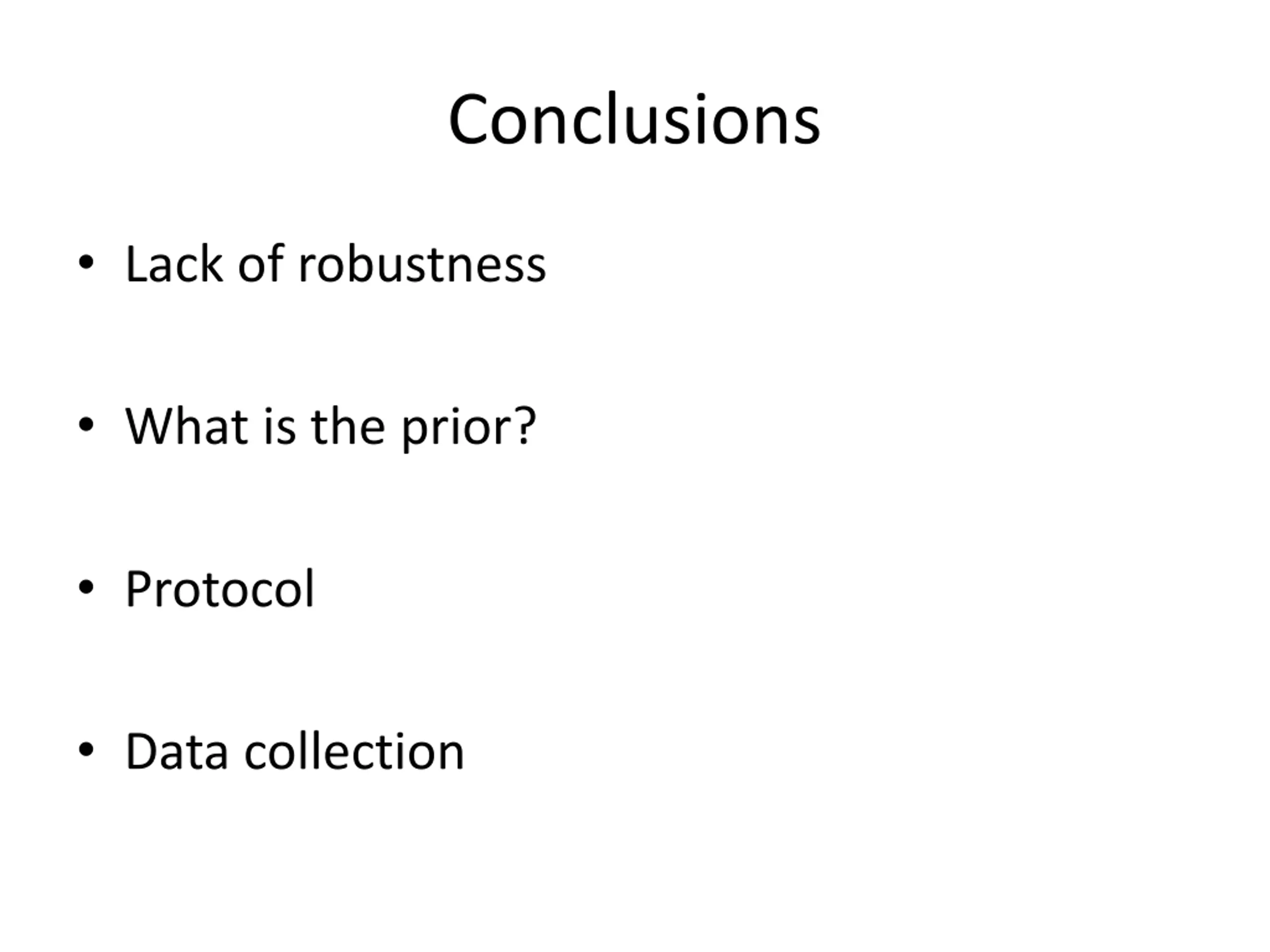 Conclusions Lack of robustness What is the prior? Protocol Data collection