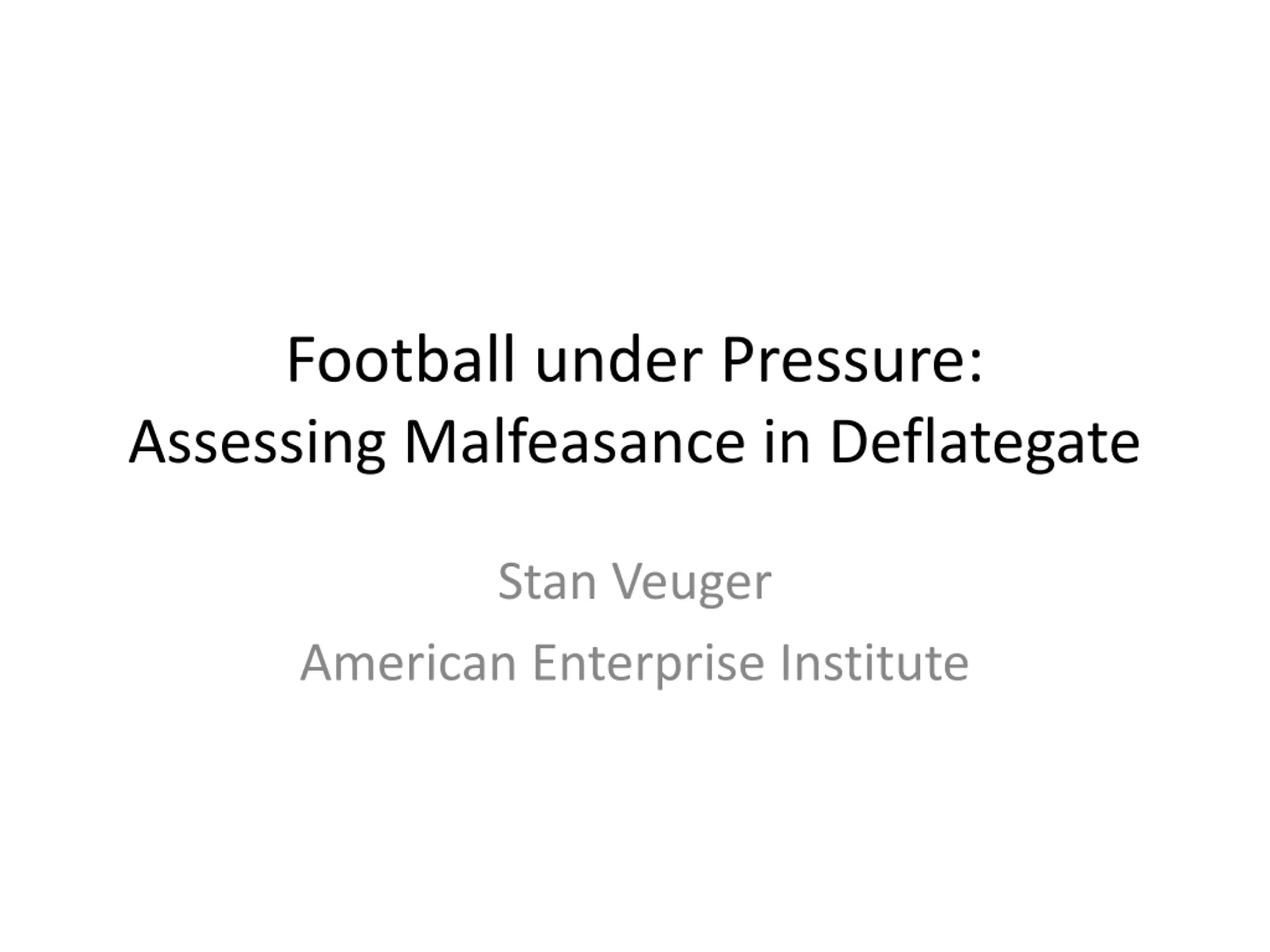 Football under Pressure: Assessing Malfeasance in Deflategate Stan Veuger American Enterprise Institute
