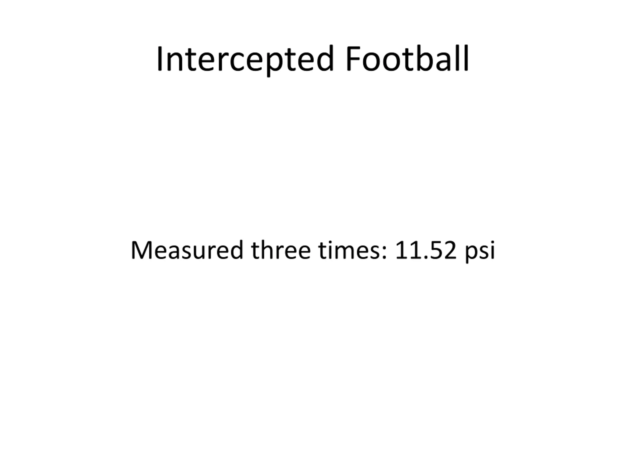 Intercepted Football Measured three times: 11.52 psi