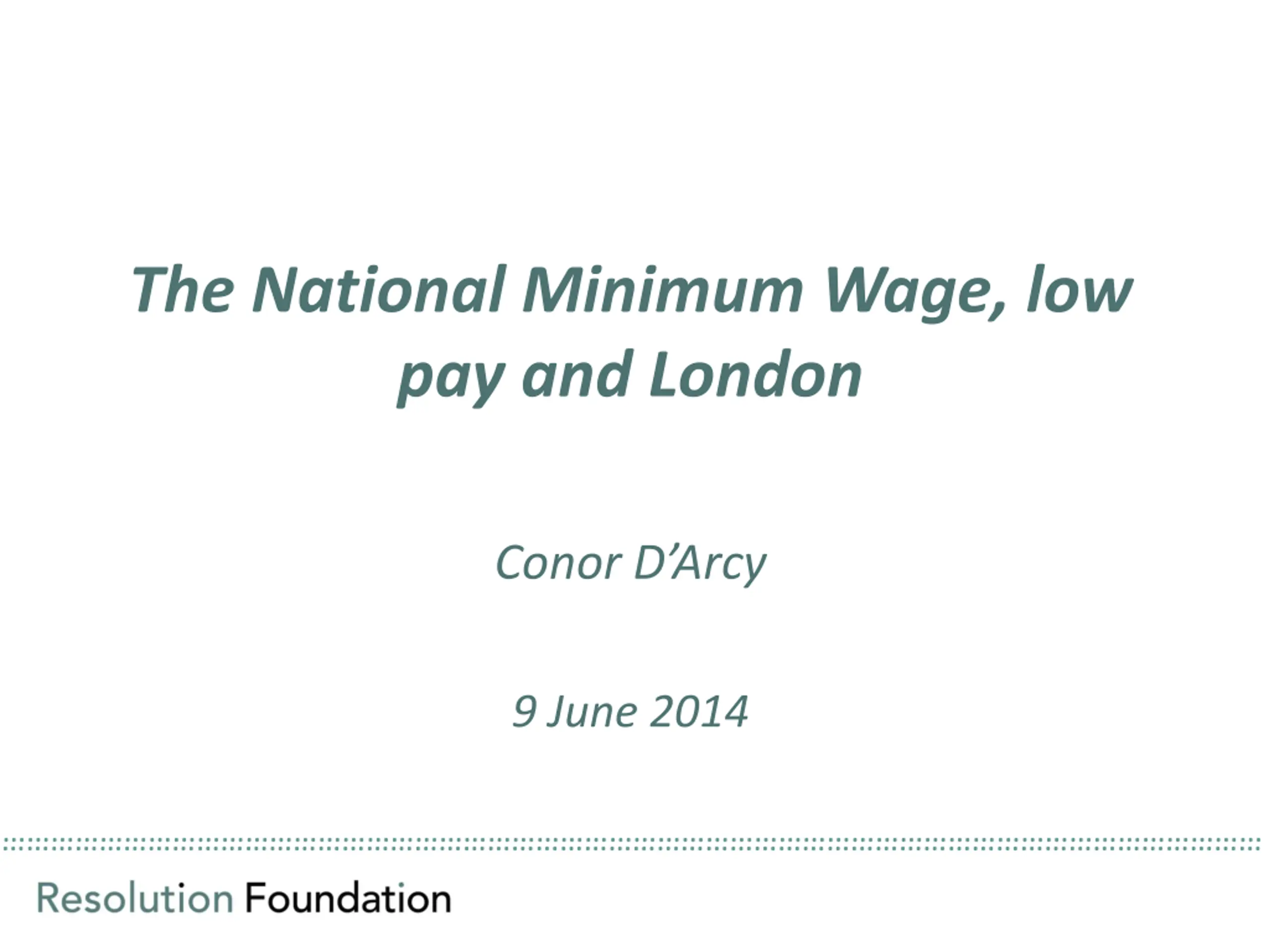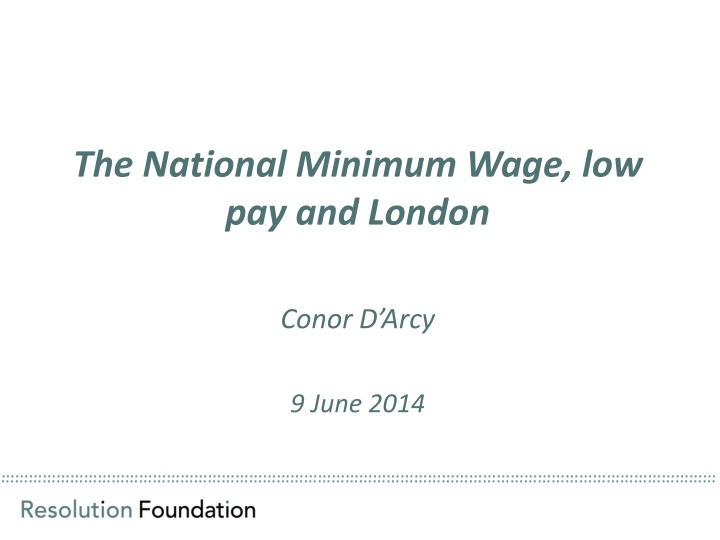 The National Minimum Wage, low pay and London Conor D Arcy 9 June 2014