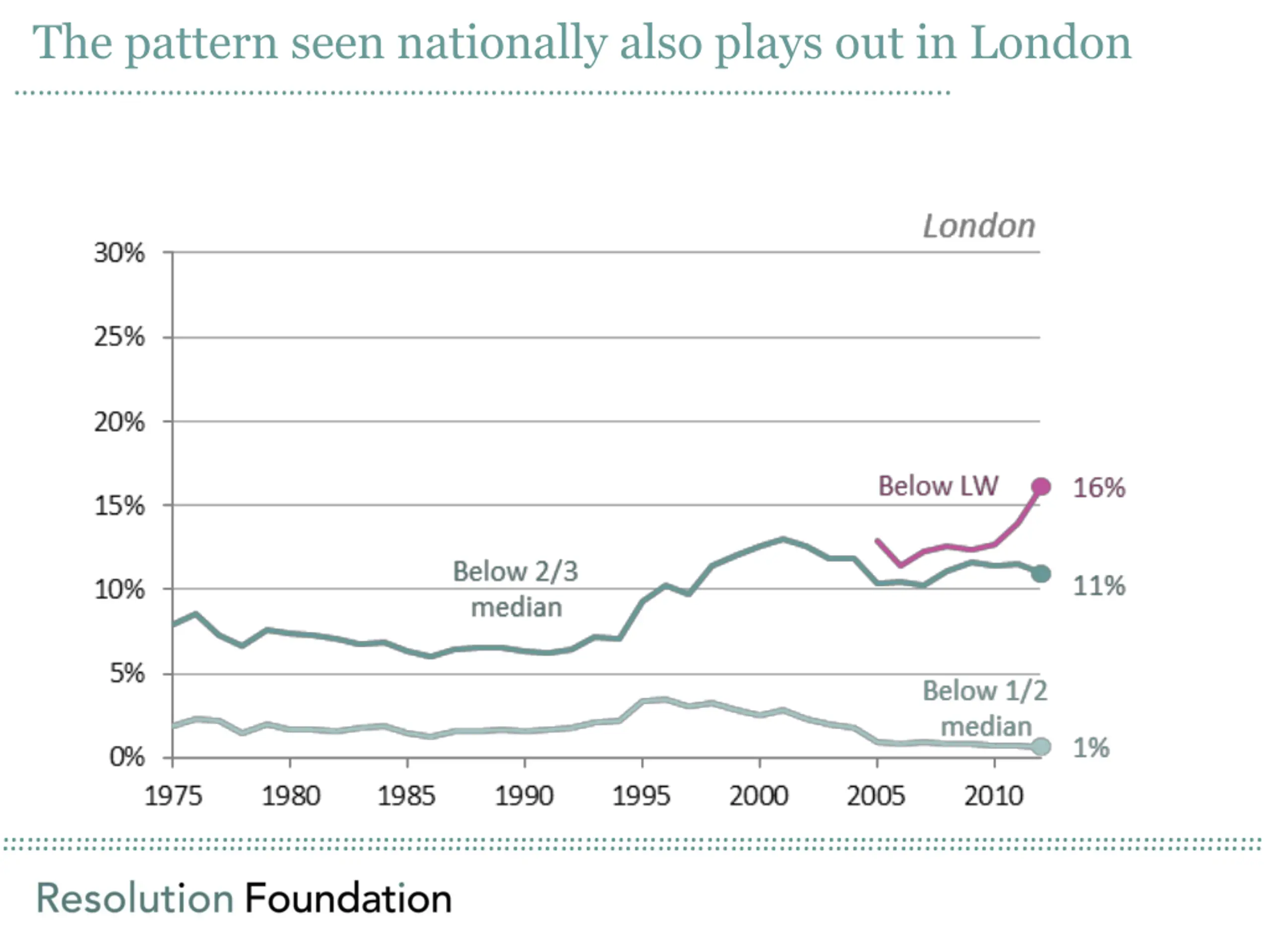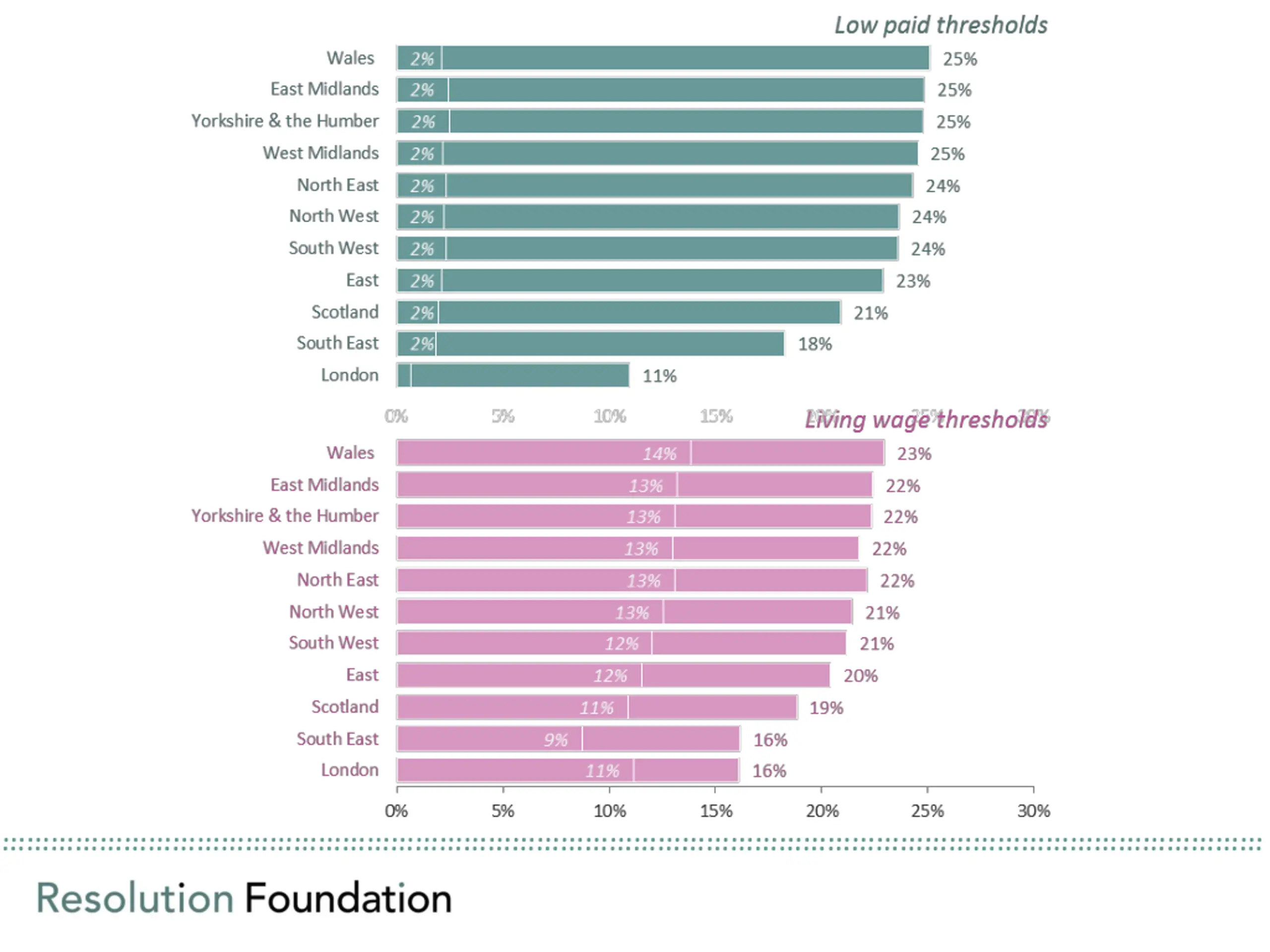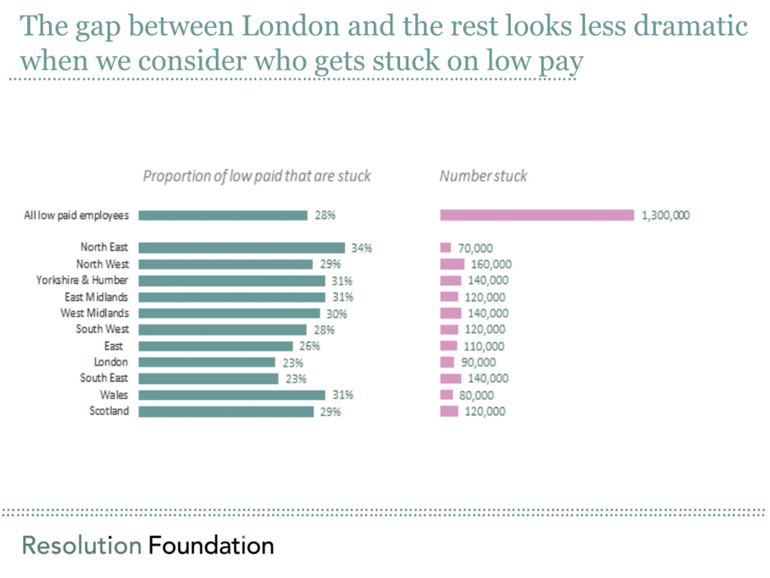 The gap between London and the rest looks less dramatic .. when we consider who gets stuck on low pay