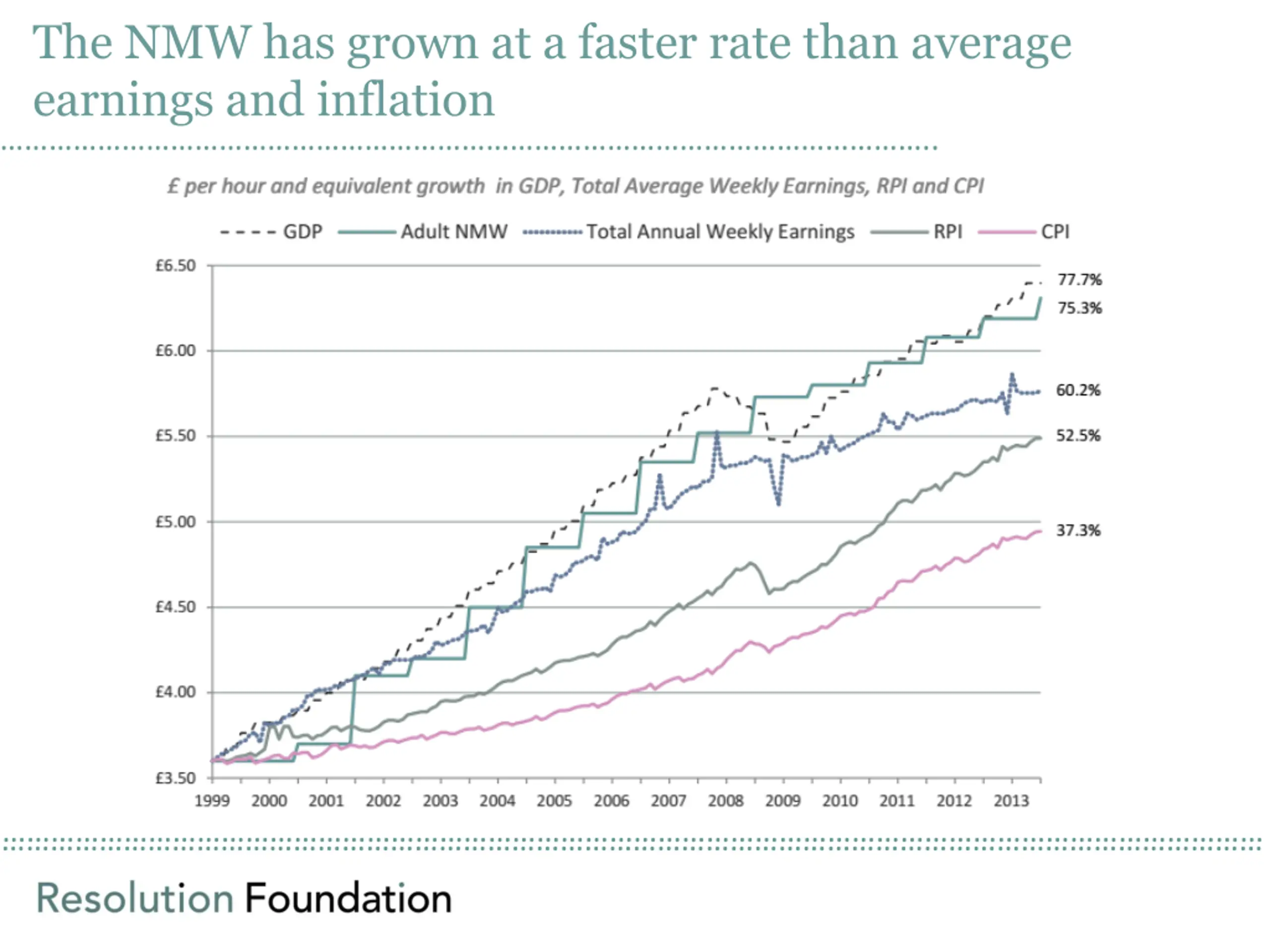 The NMW has grown at a faster rate than average earnings and inflation ..