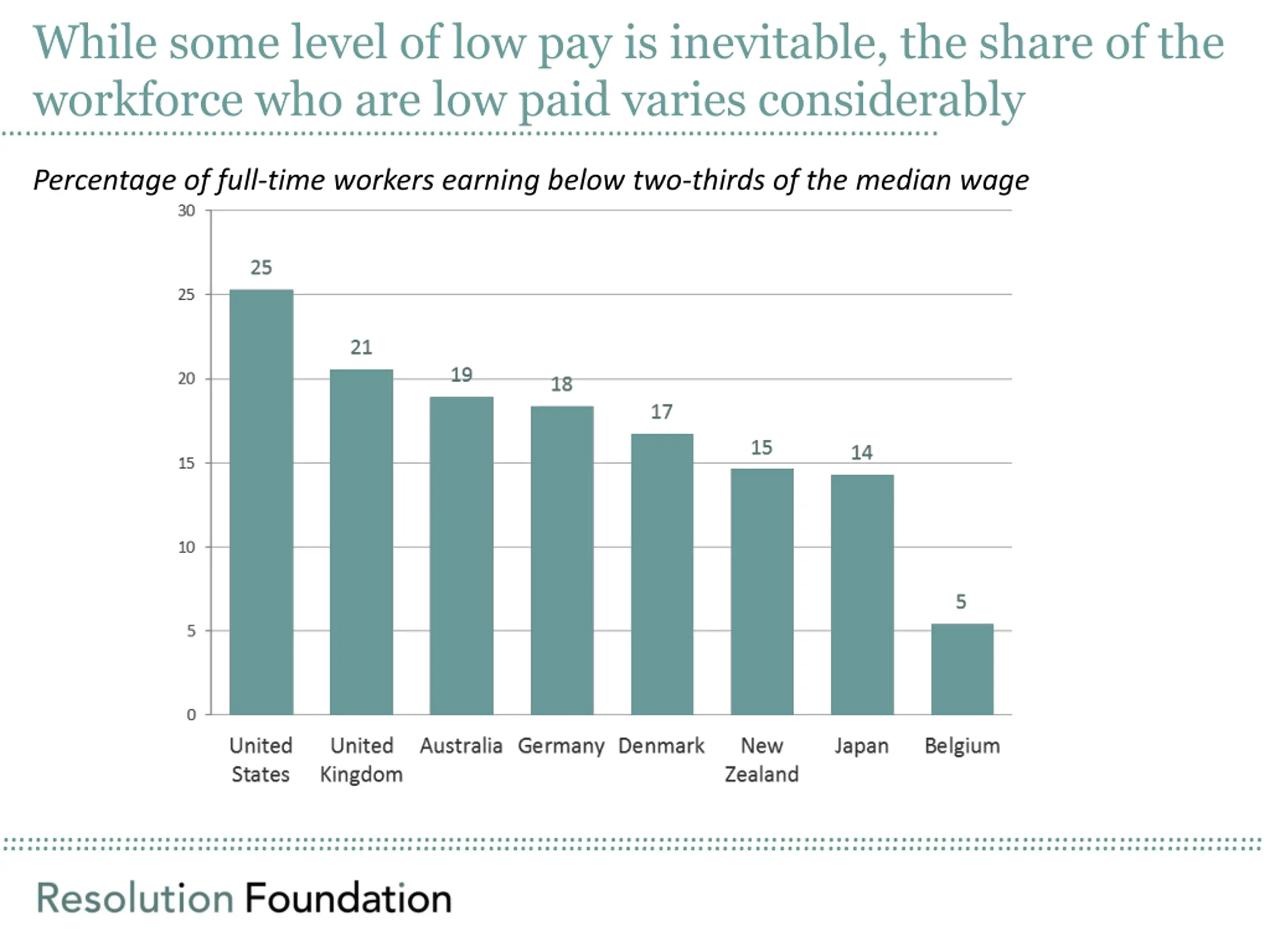 While some level of low pay is inevitable, the share of the workforce who are low paid varies considerably .. Percentage of full-time workers earning below two-thirds of the median wage