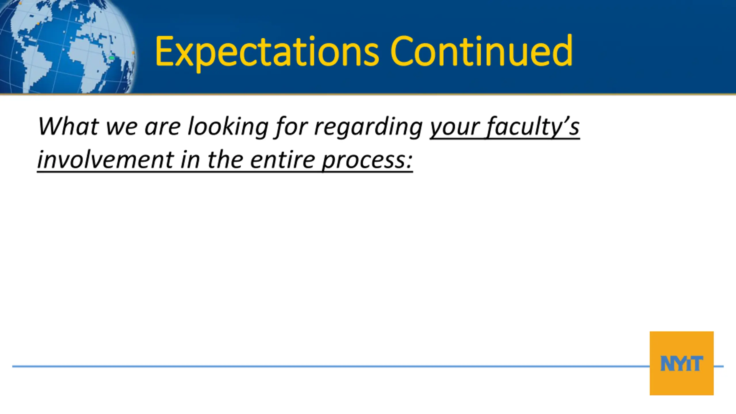 Expectations Continued Expectations Continued What we are looking for regarding your faculty s involvement in the entire process: