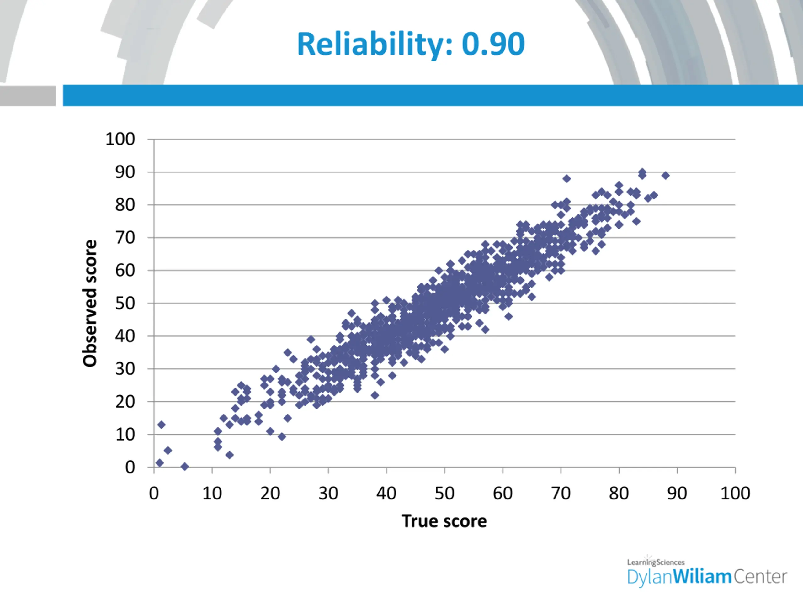 Reliability: 0.90 100 90 80 70 Observed score 60 50 40 30 20 10 0 0 10 20 30 40 50 60 70 80 90 100 True score