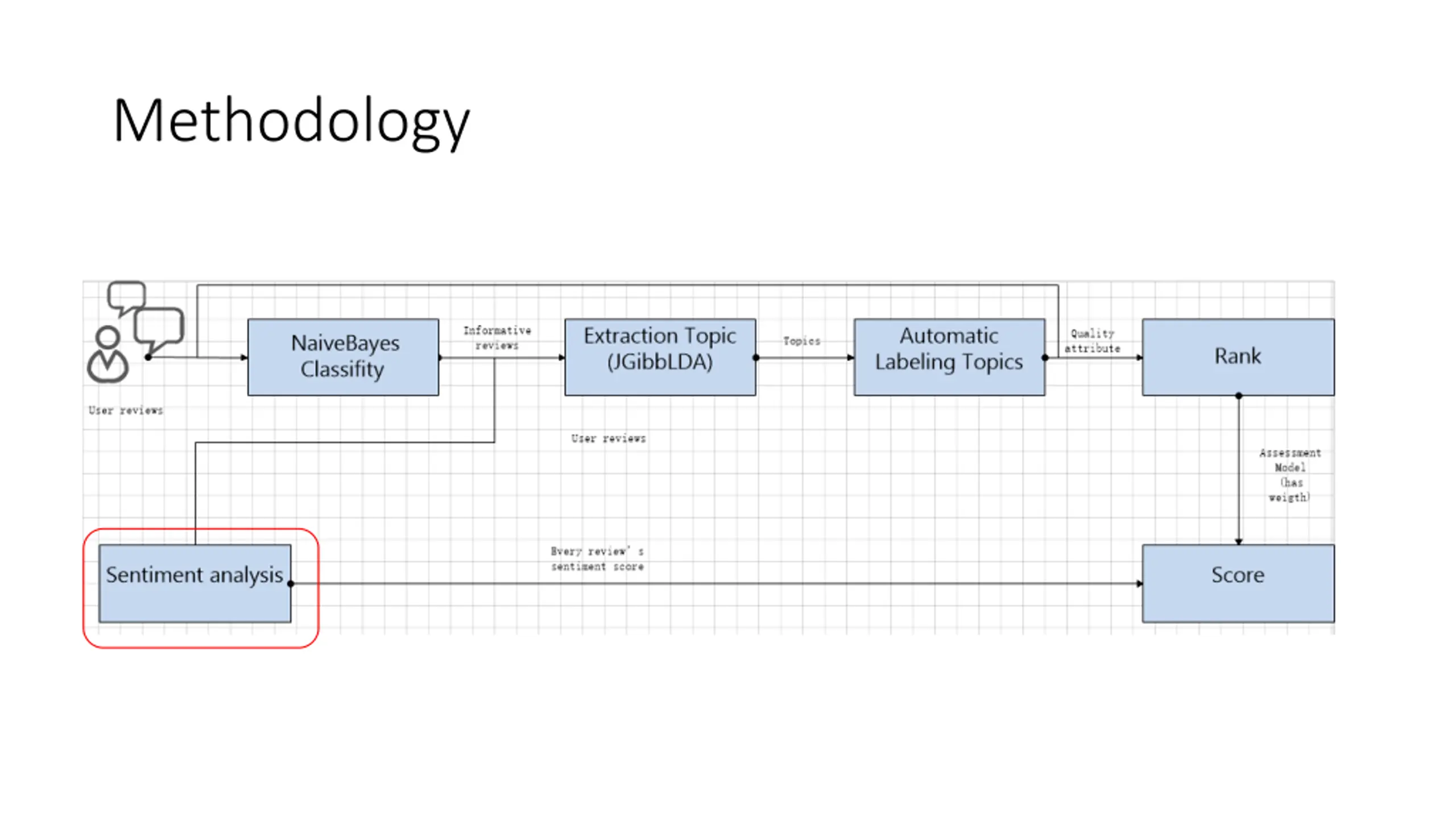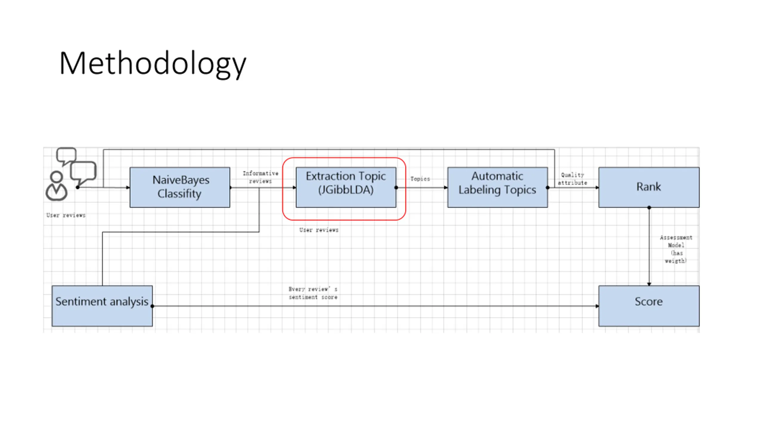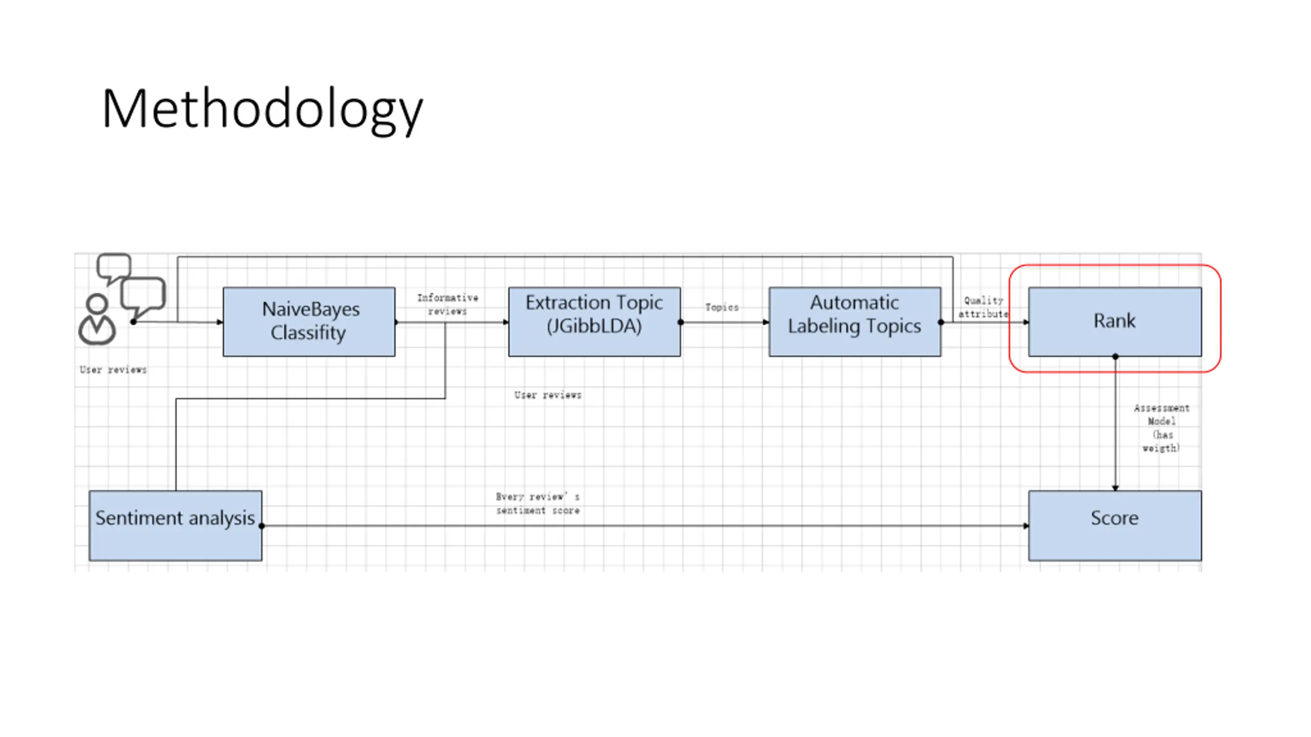 Outline Outline Assessment Models(OSMM Model, OpenBRR, SQO-OSS) Learning Assessment Models And Assess Software From user s reviews Contributions Methodology NaiveBayes Classifity Latent Dirichlet Allocation Automatic Labeling Topics Rank Sentiment analysis