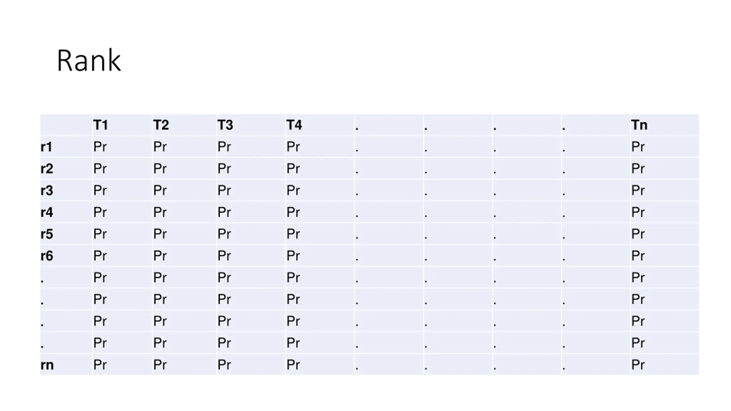 Rank T1 Pr Pr Pr Pr Pr Pr Pr Pr Pr Pr Pr T2 Pr Pr Pr Pr Pr Pr Pr Pr Pr Pr Pr T3 Pr Pr Pr Pr Pr Pr Pr Pr Pr Pr Pr T4 Pr Pr Pr Pr Pr Pr Pr Pr Pr Pr Pr Tn Pr Pr Pr Pr Pr Pr Pr Pr Pr Pr Pr . . . . . . . . r1 r2 r3 r4 r5 r6 . . . . . . . . . . . . . . . . . . . . . . . . . . . . . . . . . . . . . . . . . . . . rn . . . . . . . .