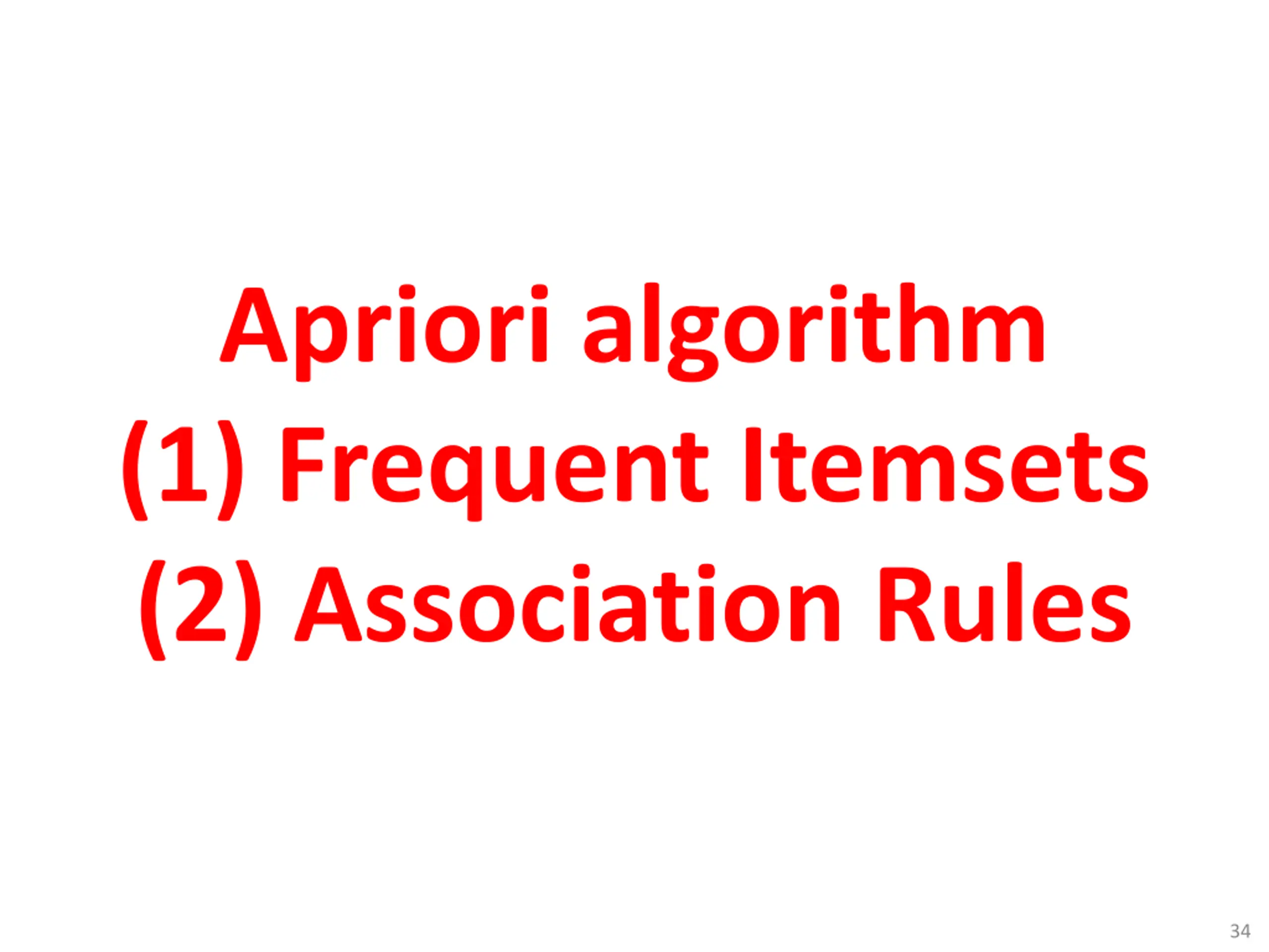 Apriori algorithm (1) Frequent Itemsets (2) Association Rules 34