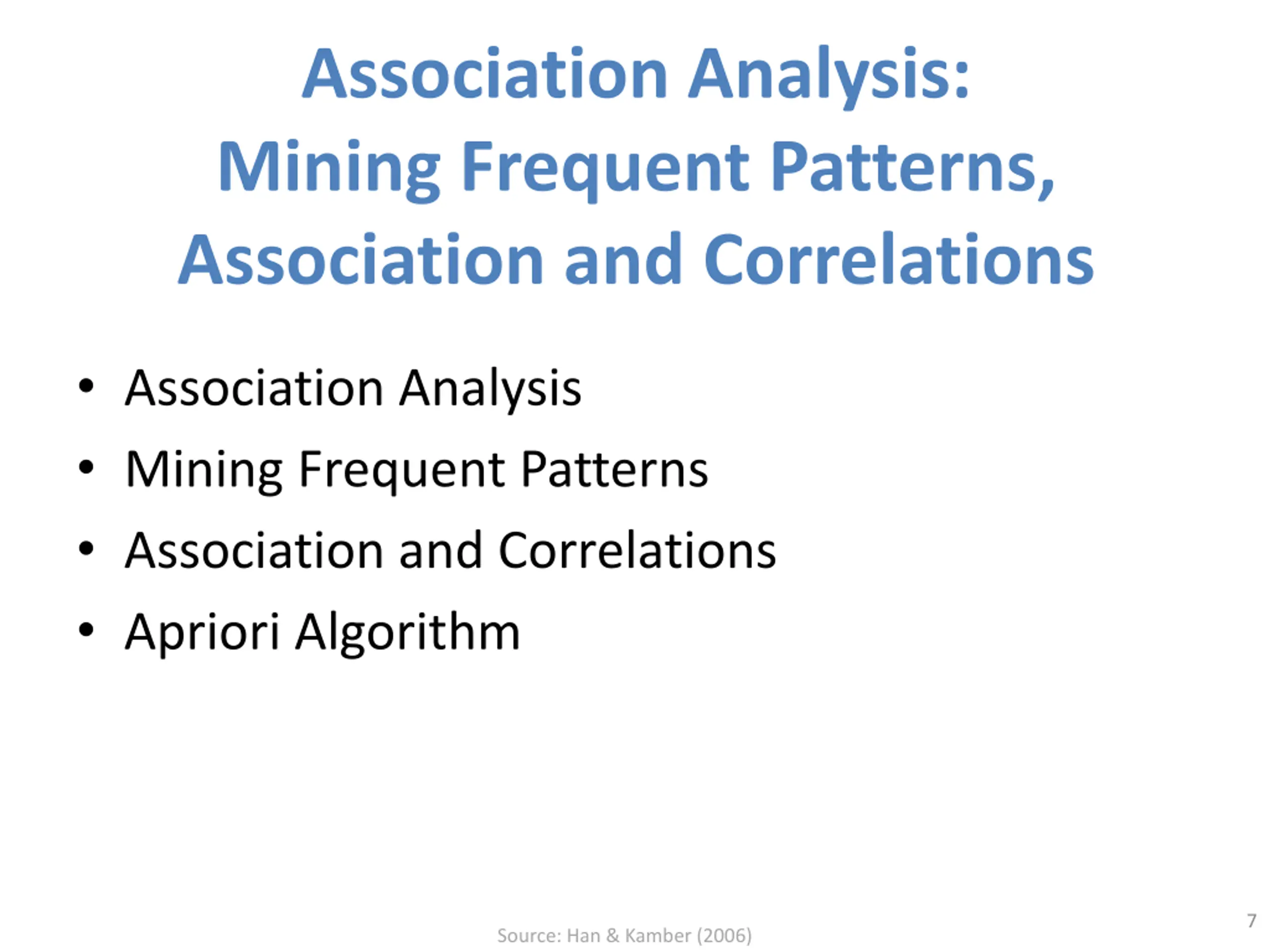 Association Analysis: Mining Frequent Patterns, Association and Correlations Association Analysis Mining Frequent Patterns Association and Correlations Apriori Algorithm 7 Source: Han & Kamber (2006)