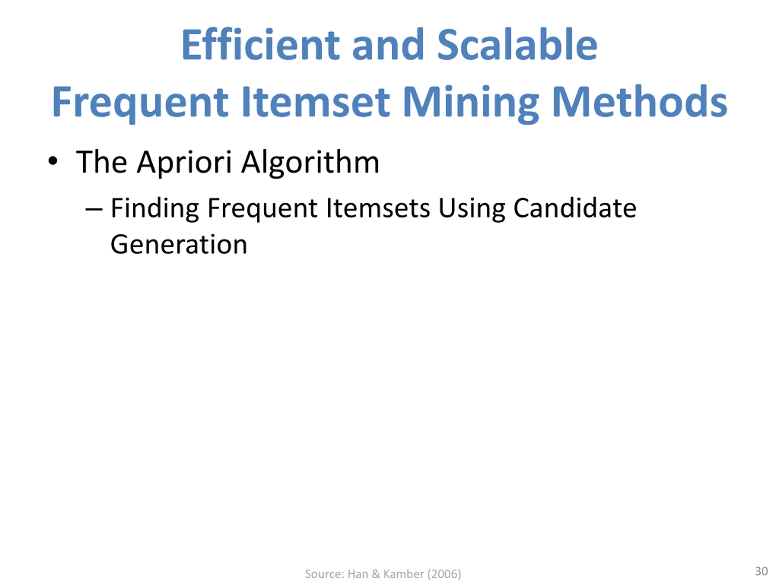 Efficient and Scalable Frequent Itemset Mining Methods The Apriori Algorithm Finding Frequent Itemsets Using Candidate Generation 30 Source: Han & Kamber (2006)