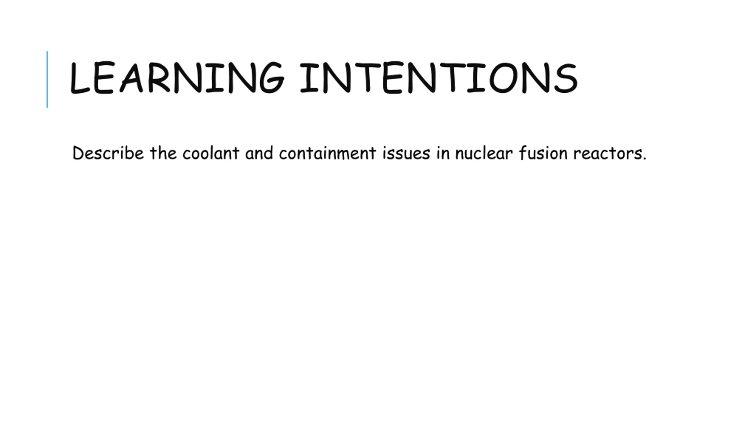 LEARNING INTENTIONS Describe the coolant and containment issues in nuclear fusion reactors.