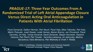 Atrial Fibrillation (AF) Persistent Therapeutic Objectives: 1. Relieve symptoms often only rate control required; diuretic may also be needed (often only on temporary basis). 2. Target ventricular (apex or ECG) rate <110bpm. If still symptomatic, aim for lower rate, <80bpm. 3. Assess thromboembolic risk and anticoagulate as appropriate (see flow chart further on). 4. In some cases, consider restoration of sinus rhythm by electrical or pharmacological cardioversion (only attempt chemical or electrical cardioversion after warfarin; risk of thromboembolism if not anticoagulated; limited long-term success). 5. Treat concomitant LV systolic dysfunction / heart failure. adequate anticoagulation with