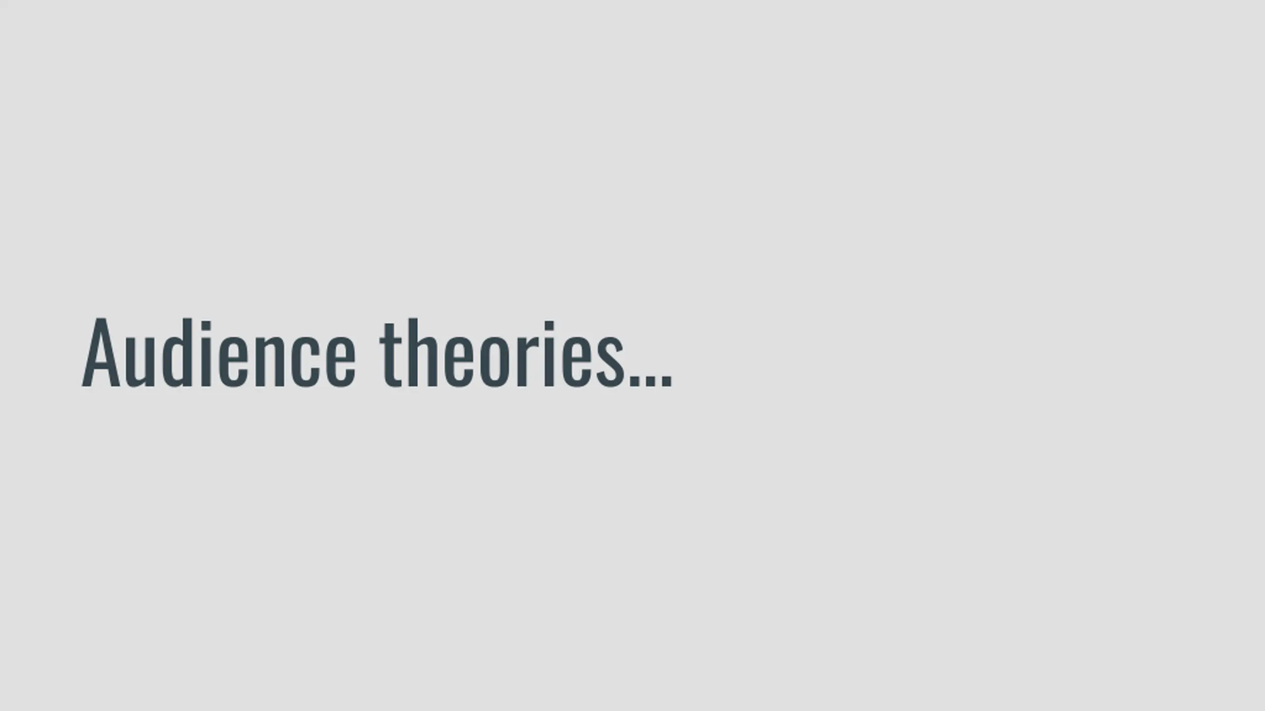Reception Theory1 encoding and decoding Professional media encodes messages using visual and aural cues. Media encoding is affected by institutional context, media production processes and genre-driven routines. Media products are polysemic as a result of their use of visual signs. Audience do not necessarily decode meanings that media produces effect in a straightforward way. Audiences can misread products if they are too complex or untranslatable. Stuart Hall dominant, negotiated and oppositional readings Media products reinforce dominant ideologies and cultural hegemonies. Dominant ideologies are subject to change again, the media plays a crucial role in effecting those changes. Audience use situated logics to decode media messages. Audiences can produce reading of products that accept the dominant ideologies they construct. Audiences can use their contextual knowledge to read against the grain of a media product and to thus produce negotiated or oppositional decodings. Three theorists who might challenge Hall s thinking: Gerbner: would suggest that audiences find it difficult to resist the effects of media products. Gerbner s mainstreaming theory would suggest that even the least susceptible audience members experience attitudinal change as a result of media exposure. Bandura: his Bobo doll experiments would suggest that the media has a casual effect on audience behaviours and prompts audiences to copy behaviours they have seen in the media. Guantlett: would argue that media products do not necessarily reinforce cultural hegemonies. Contemporary media products offer a wide range of identities and subversions that often work in opposition to dominant ideologies. 2 ? A