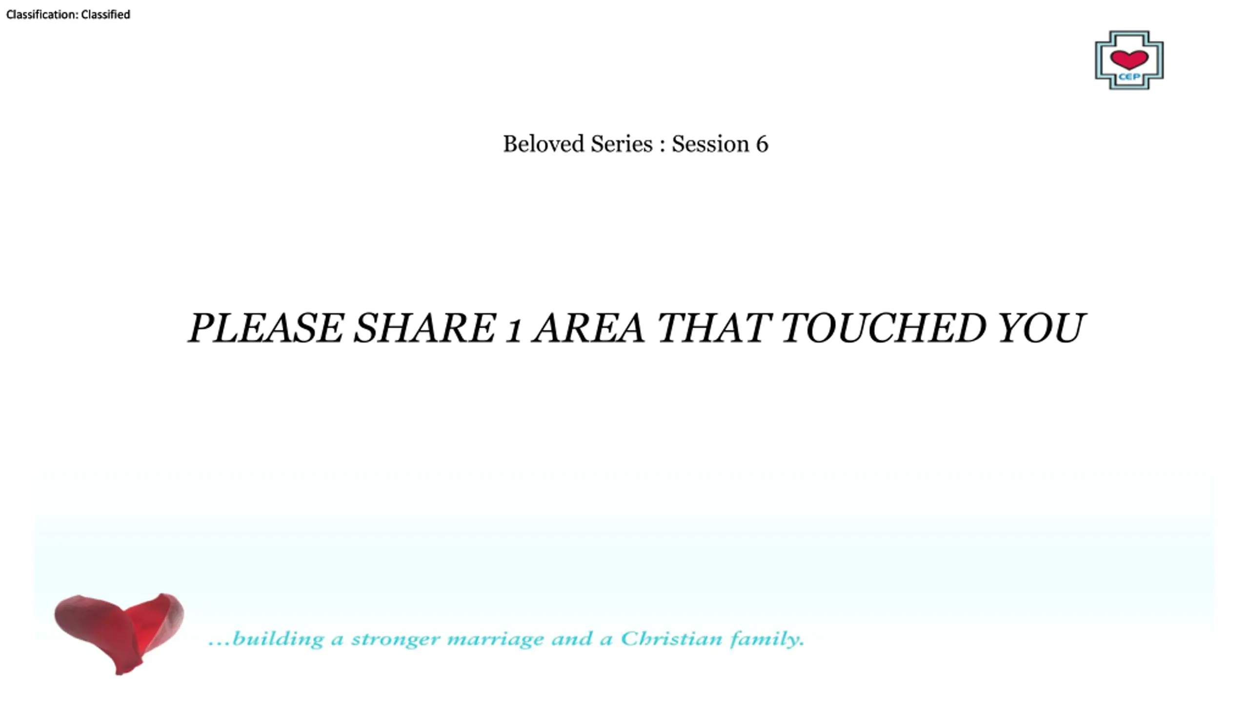 Classification: Classified Classification: Classified Beloved Series : Session 6 PLEASE SHARE 1 AREA THAT TOUCHED YOU