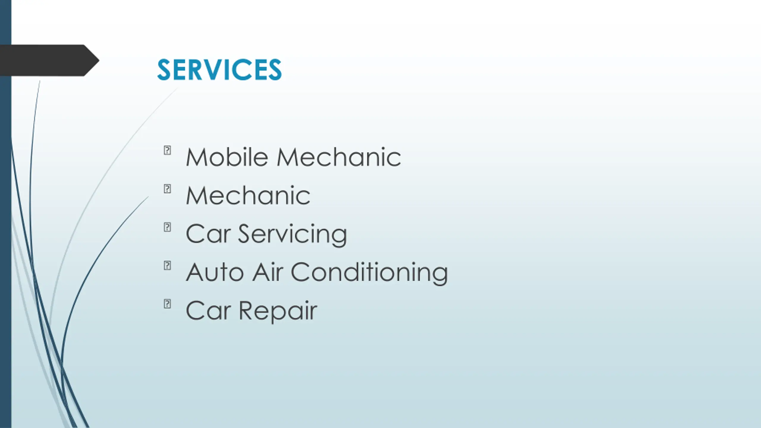 SERVICES ?Mobile Mechanic ?Mechanic ?Car Servicing ?Auto Air Conditioning ?Car Repair