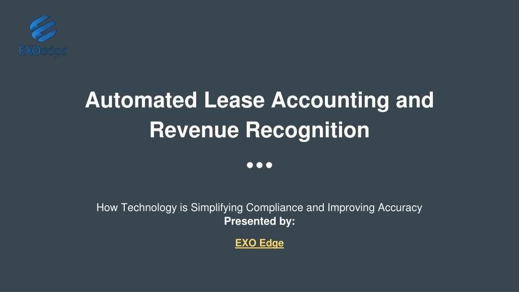 Automated Lease Accounting and Revenue Recognition How Technology is Simplifying Compliance and Improving Accuracy Presented by: EXO Edge