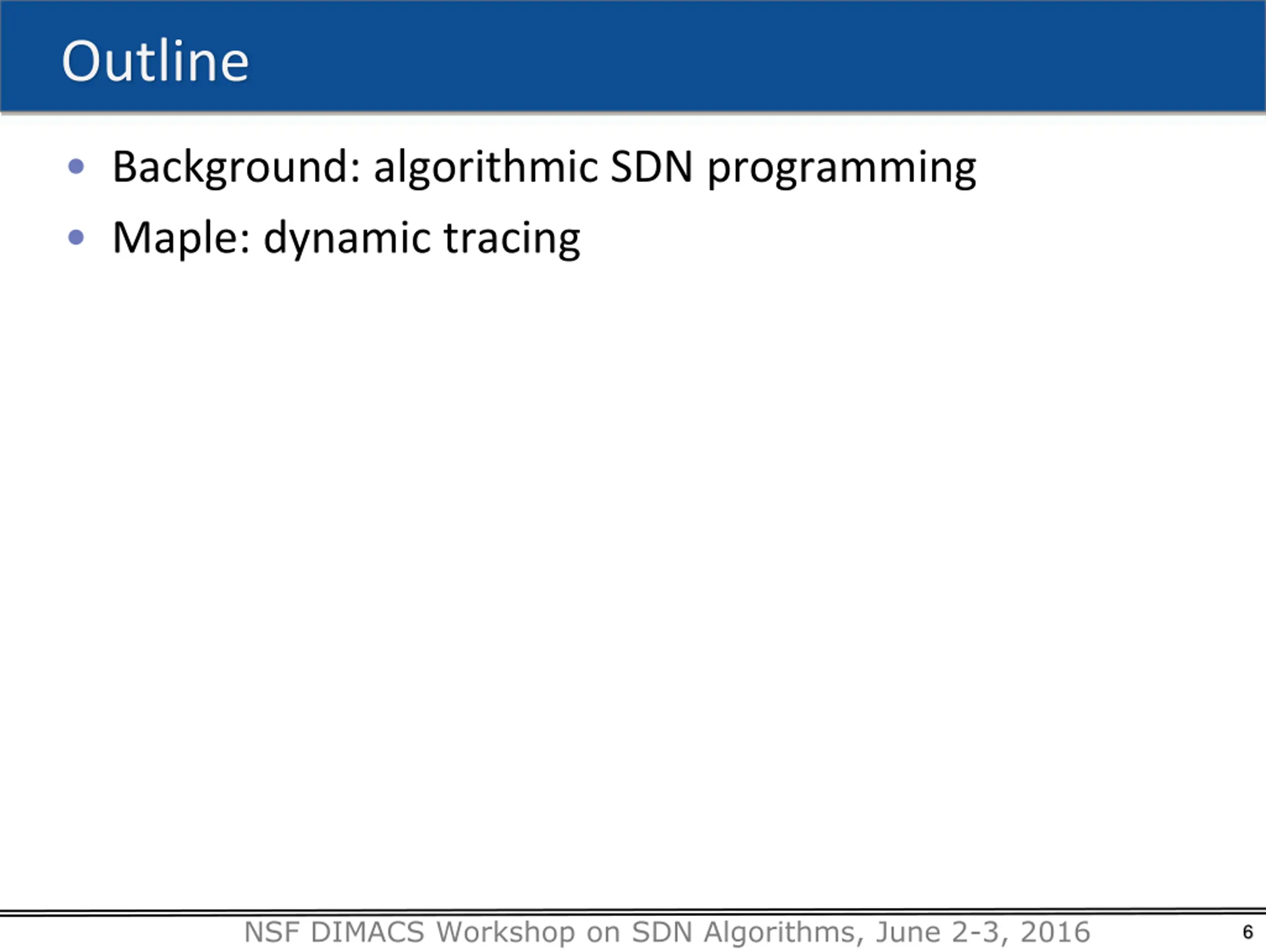 Outline Background: algorithmic SDN programming Maple: dynamic tracing NSF DIMACS Workshop on SDN Algorithms, June 2-3, 2016 6