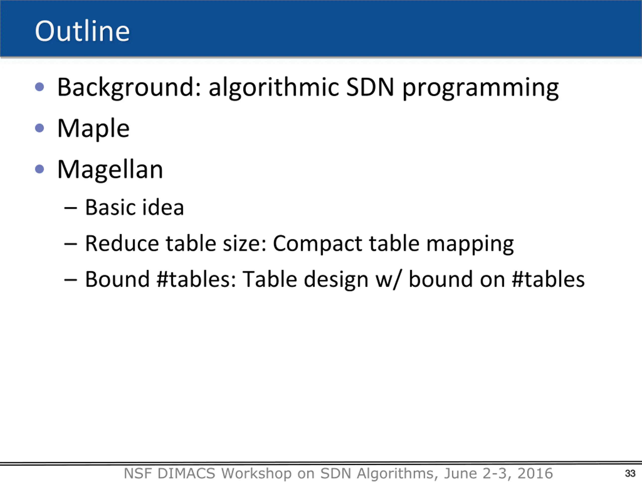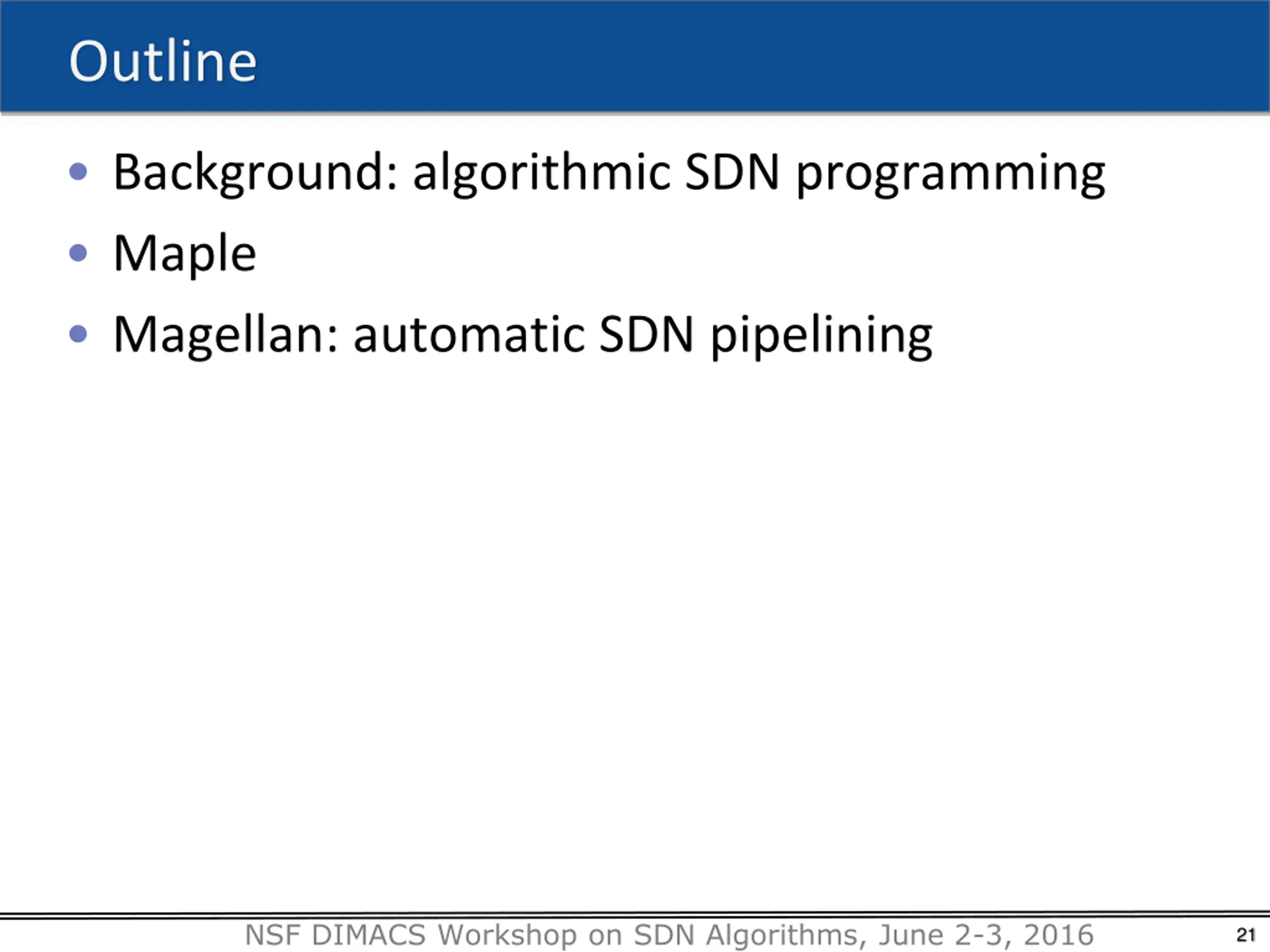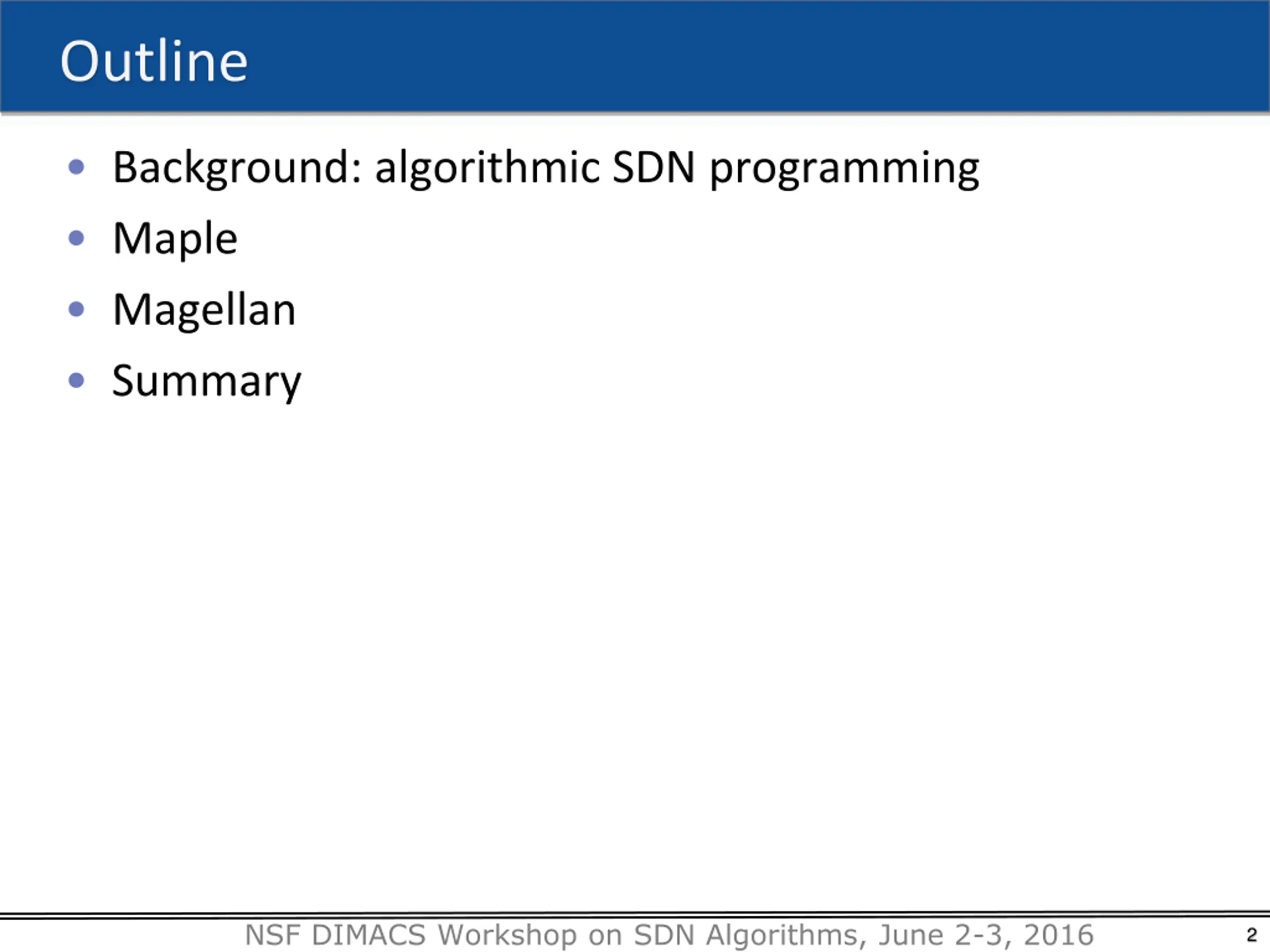 Outline Background: algorithmic SDN programming Maple Magellan Summary NSF DIMACS Workshop on SDN Algorithms, June 2-3, 2016 2