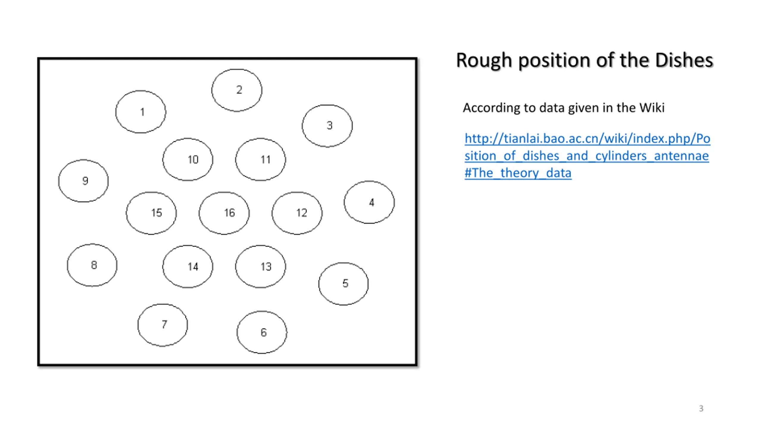 Rough position of the Dishes According to data given in the Wiki http://tianlai.bao.ac.cn/wiki/index.php/Po sition_of_dishes_and_cylinders_antennae #The_theory_data 3