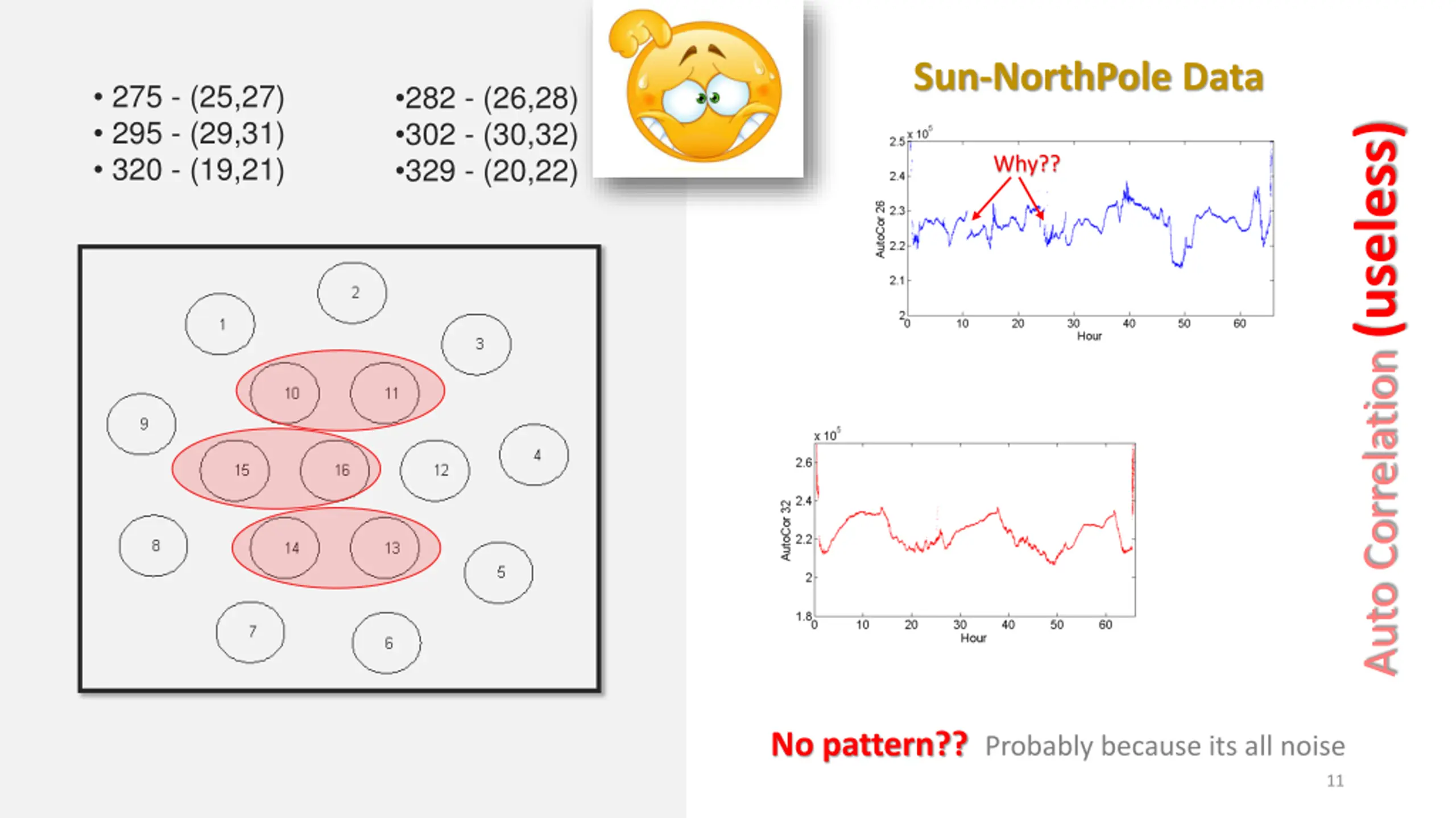 Sun-NorthPole Data 275 - (25,27) 295 - (29,31) 320 - (19,21) 282 - (26,28) 302 - (30,32) 329 - (20,22) Auto Correlation (useless) Why?? No pattern?? Probably because its all noise 11