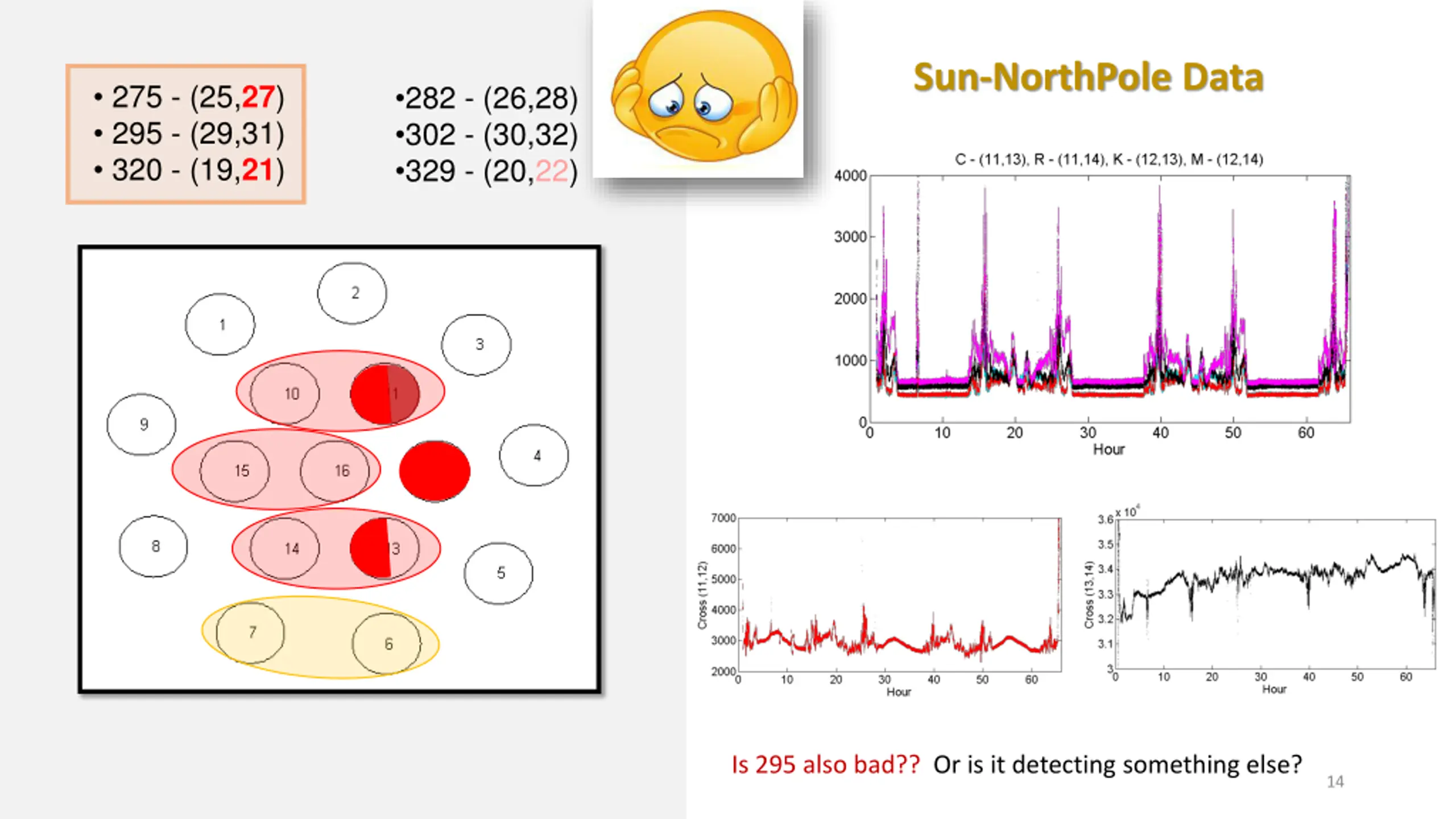 Sun-NorthPole Data 275 - (25,27) 295 - (29,31) 320 - (19,21) 282 - (26,28) 302 - (30,32) 329 - (20,22) Is 295 also bad?? Or is it detecting something else? 14