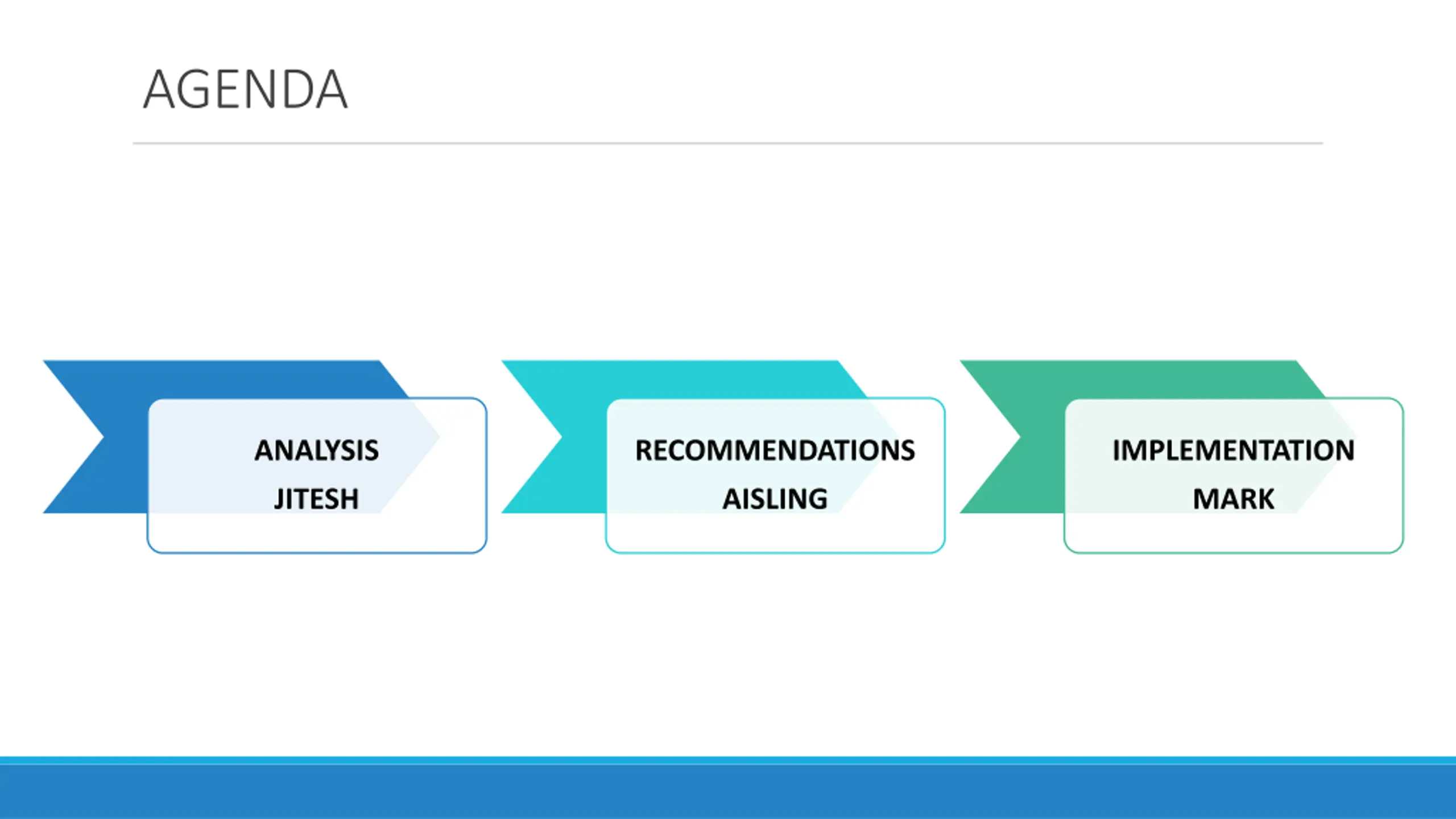 AGENDA ANALYSIS RECOMMENDATIONS IMPLEMENTATION JITESH AISLING MARK