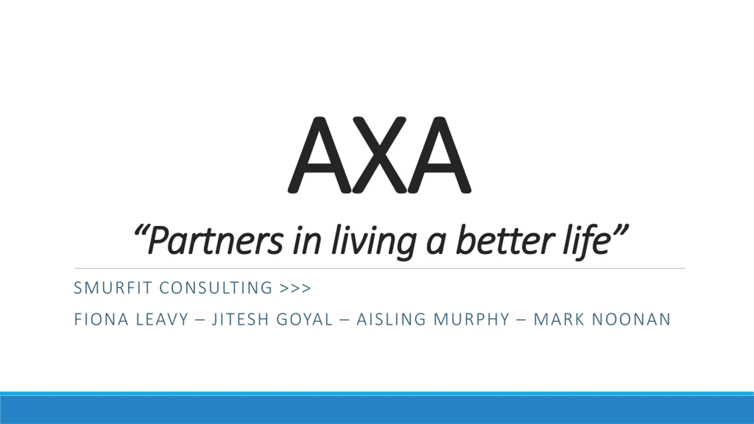 AXA AXA Partners in living a better life Partners in living a better life SMURFIT CONSULTING >>> FIONA LEAVY JITESH GOYAL AISLING MURPHY MARK NOONAN