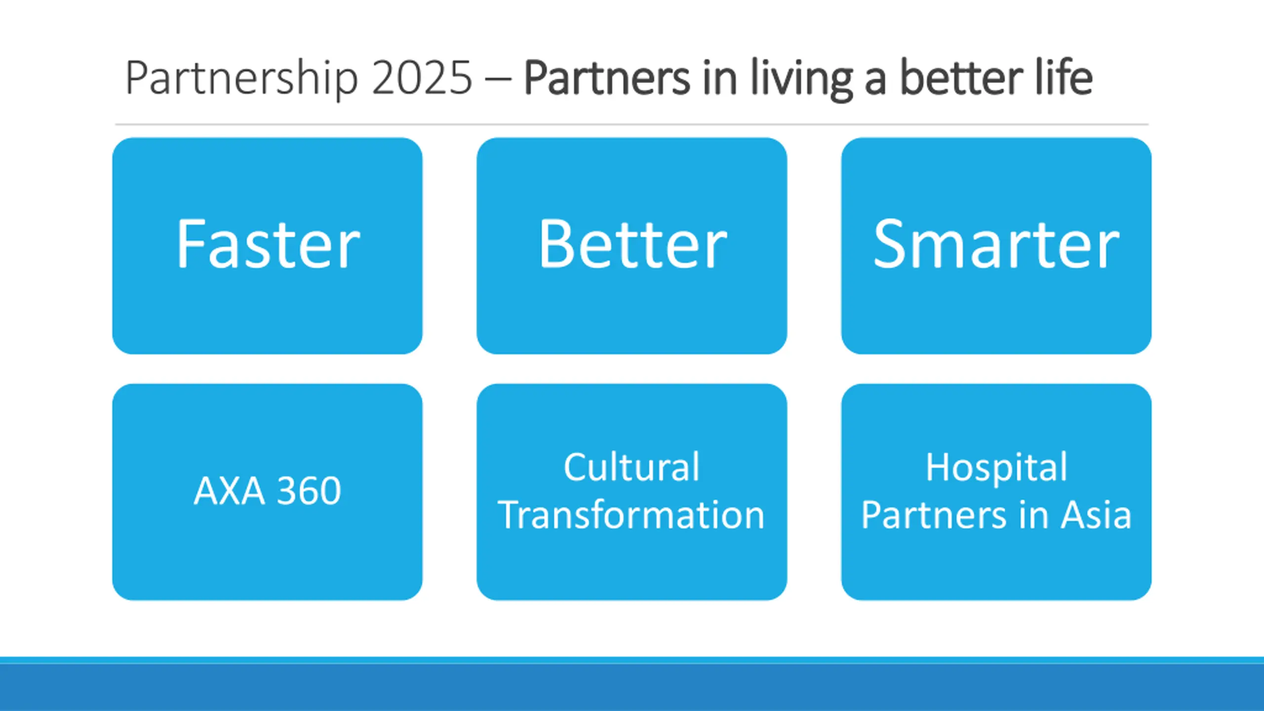 Partnership 2025 Partners in living a better life Partners in living a better life Faster Better Smarter Cultural Transformation Hospital Partners in Asia AXA 360