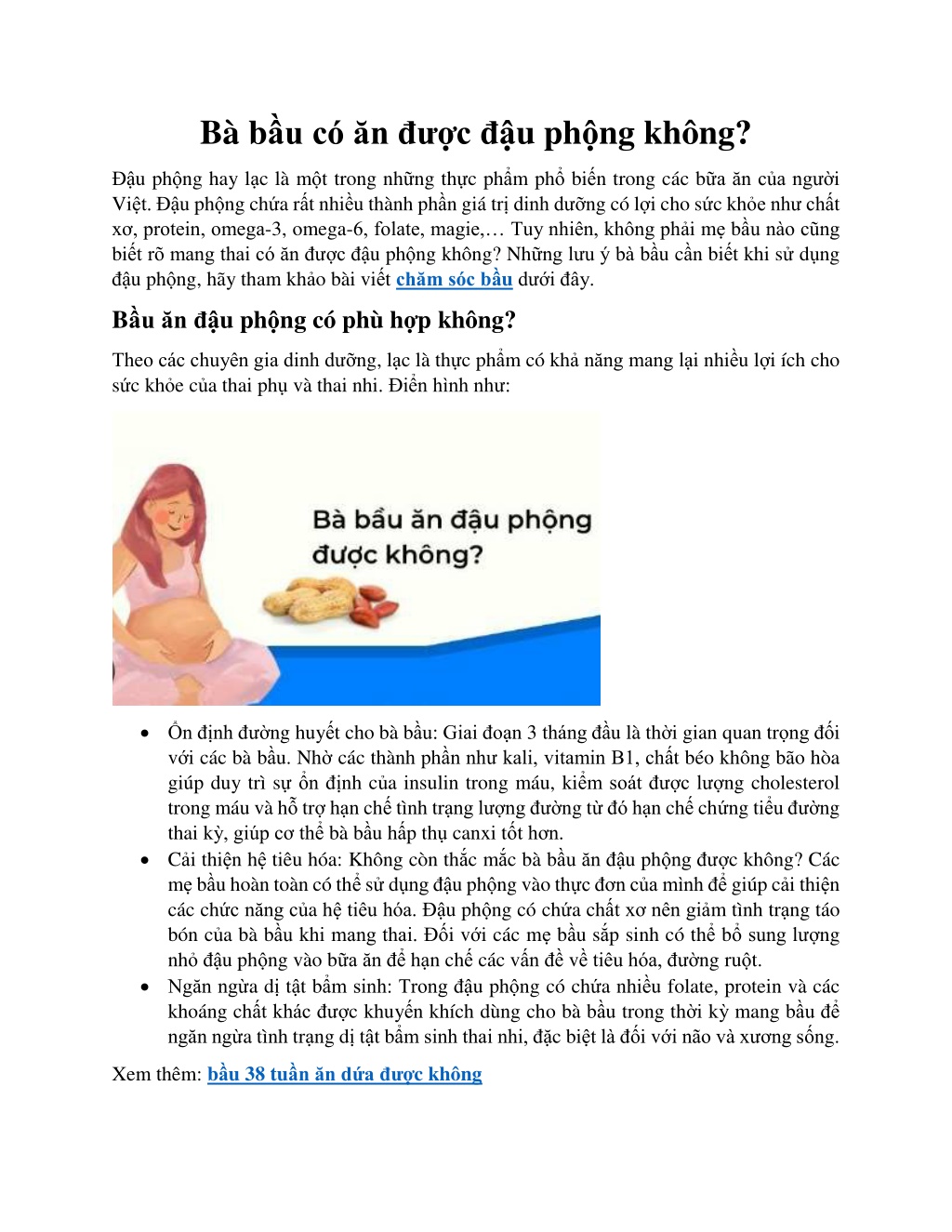B bu c n c u phng khng? u ph ng hay l c l m t trong nh ng th c ph m ph bi n trong c c b a n c a ng i Vi t. u ph ng ch a r t nhi u th nh ph n gi tr dinh d ng c l i cho s c kh e nh ch t x , protein, omega-3, omega-6, folate, magie, Tuy nhi n, kh ng ph i m b u n o c ng bi t r mang thai c n c u ph ng kh ng? Nh ng l u b b u c n bi t khi s d ng u ph ng, h y tham kh o b i vi t ch m s c b ud i y. B u n u ph ng c ph h p kh ng? Theo c c chuy n gia dinh d ng, l c l th c ph m c kh n ng mang l i nhi u l i ch cho s c kh e c a thai ph v thai nhi. i n h nh nh : n nh ng huy t cho b b u: Giai o n 3 th ng u l th i gian quan tr ng i v i c c b b u. Nh c c th nh ph n nh kali, vitamin B1, ch t b o kh ng b o h a gi p duy tr s n nh c a insulin trong m u, ki m so t c l ng cholesterol trong m u v h tr h n ch t nh tr ng l ng ng t h n ch ch ng ti u ng thai k , gi p c th b b u h p th canxi t t h n. C i thi n h ti u h a: Kh ng c n th c m c b b u n u ph ng c kh ng? C c m b u ho n to n c th s d ng u ph ng v o th c n c a m nh gi p c i thi n c c ch c n ng c a h ti u h a. u ph ng c ch a ch t x n n gi m t nh tr ng t o b n c a b b u khi mang thai. i v i c c m b u s p sinh c th b sung l ng nh u ph ng v o b a n h n ch c c v n v ti u h a, ng ru t. Ng n ng a d t t b m sinh: Trong u ph ng c ch a nhi u folate, protein v c c kho ng ch t kh c c khuy n kh ch d ng cho b b u trong th i k mang b u ng n ng a t nh tr ng d t t b m sinh thai nhi, c bi t l i v i n o v x ng s ng. Xem th m: b u 38 tu n n d a c kh ng