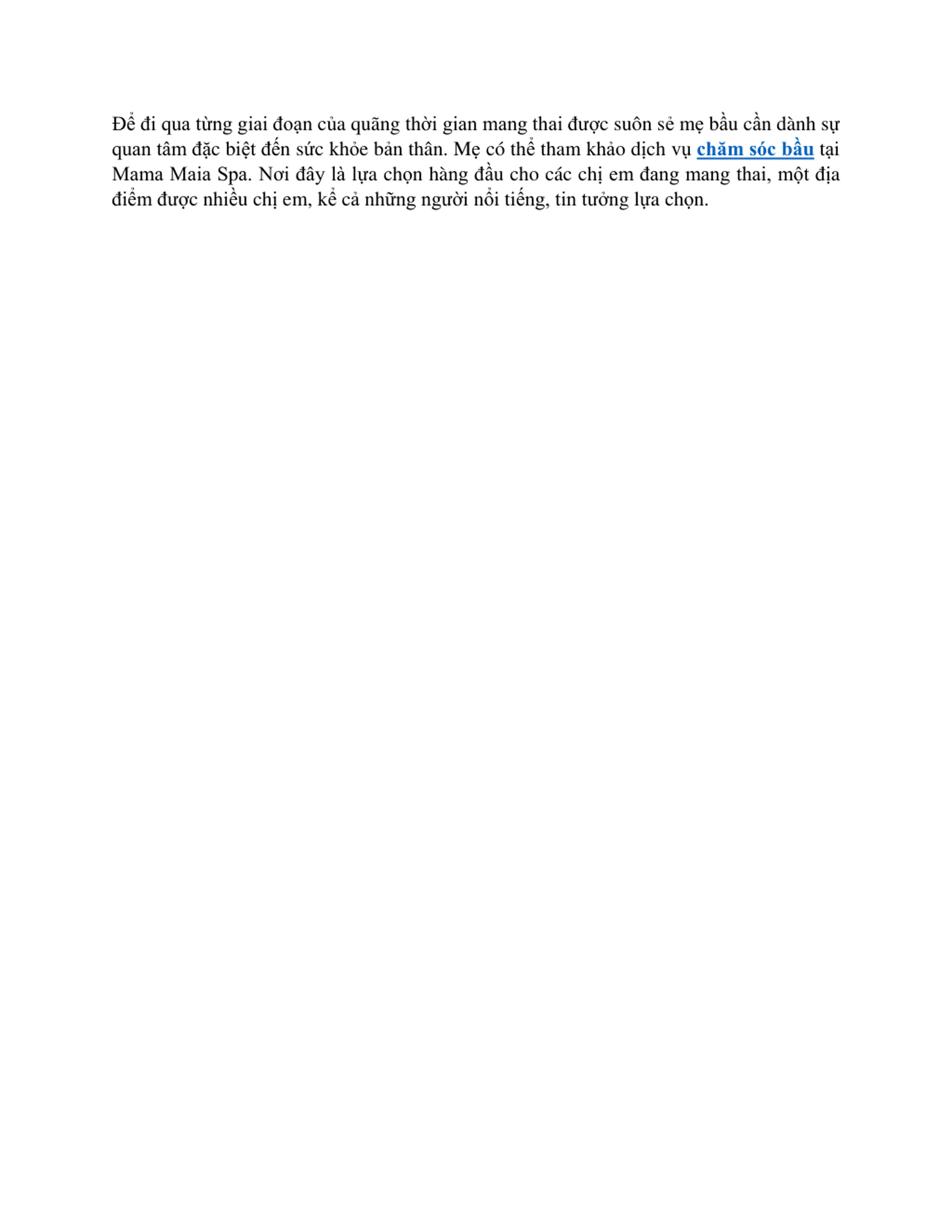 i qua tng giai on ca qung thi gian mang thai c sun s m bu cn dnh s quan t m c bi t n s c kh e b n th n. M c th tham kh o d ch v ch m s c b u t i Mama Maia Spa. N i y l l a ch n h ng u cho c c ch em ang mang thai, m t a i m c nhi u ch em, k c nh ng ng i n i ti ng, tin t ng l a ch n.