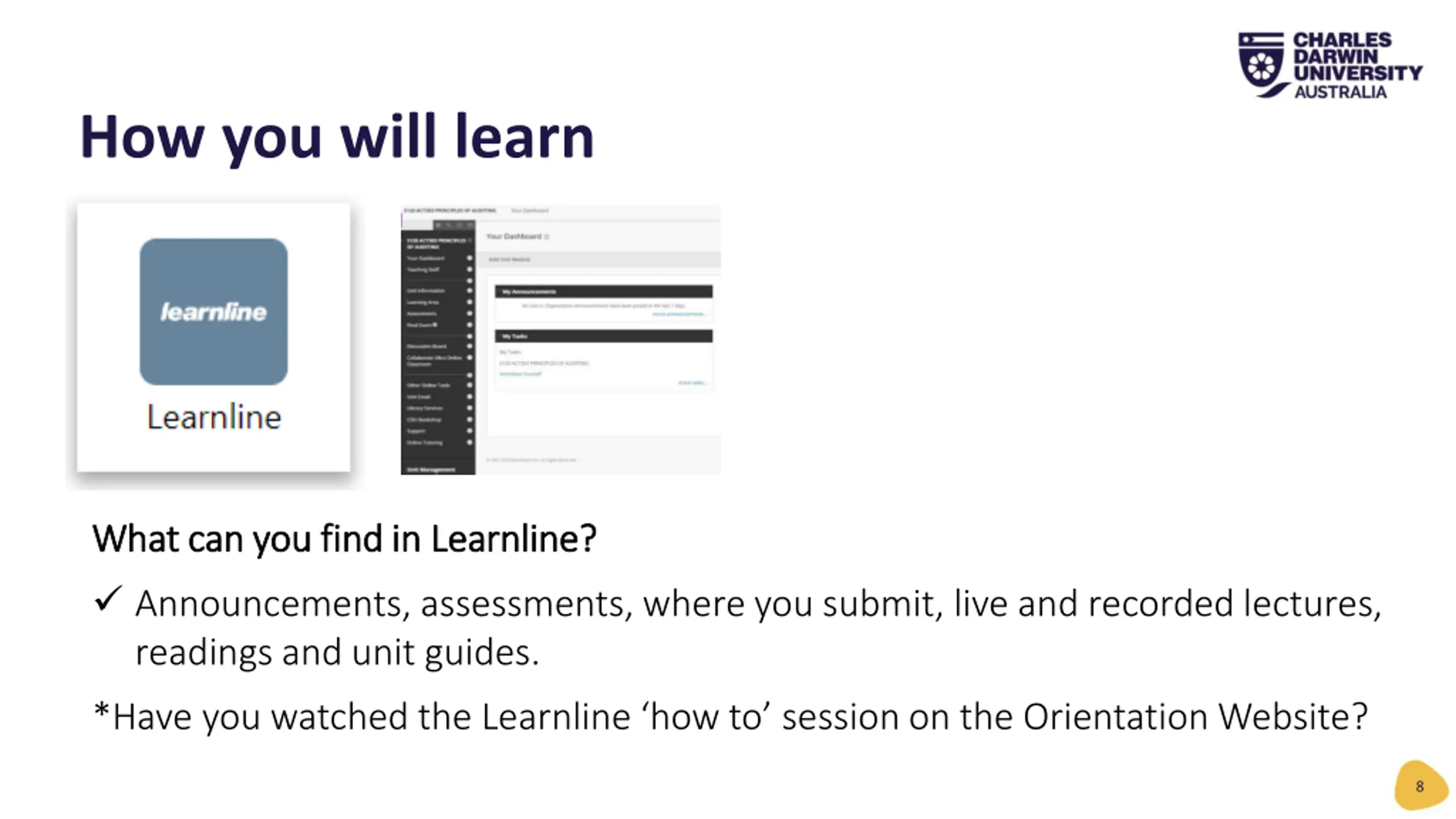 How you will learn What can you find in Learnline? What can you find in Learnline? Announcements, assessments, where you submit, live and recorded lectures, readings and unit guides. *Have you watched the Learnline how to session on the Orientation Website? 8