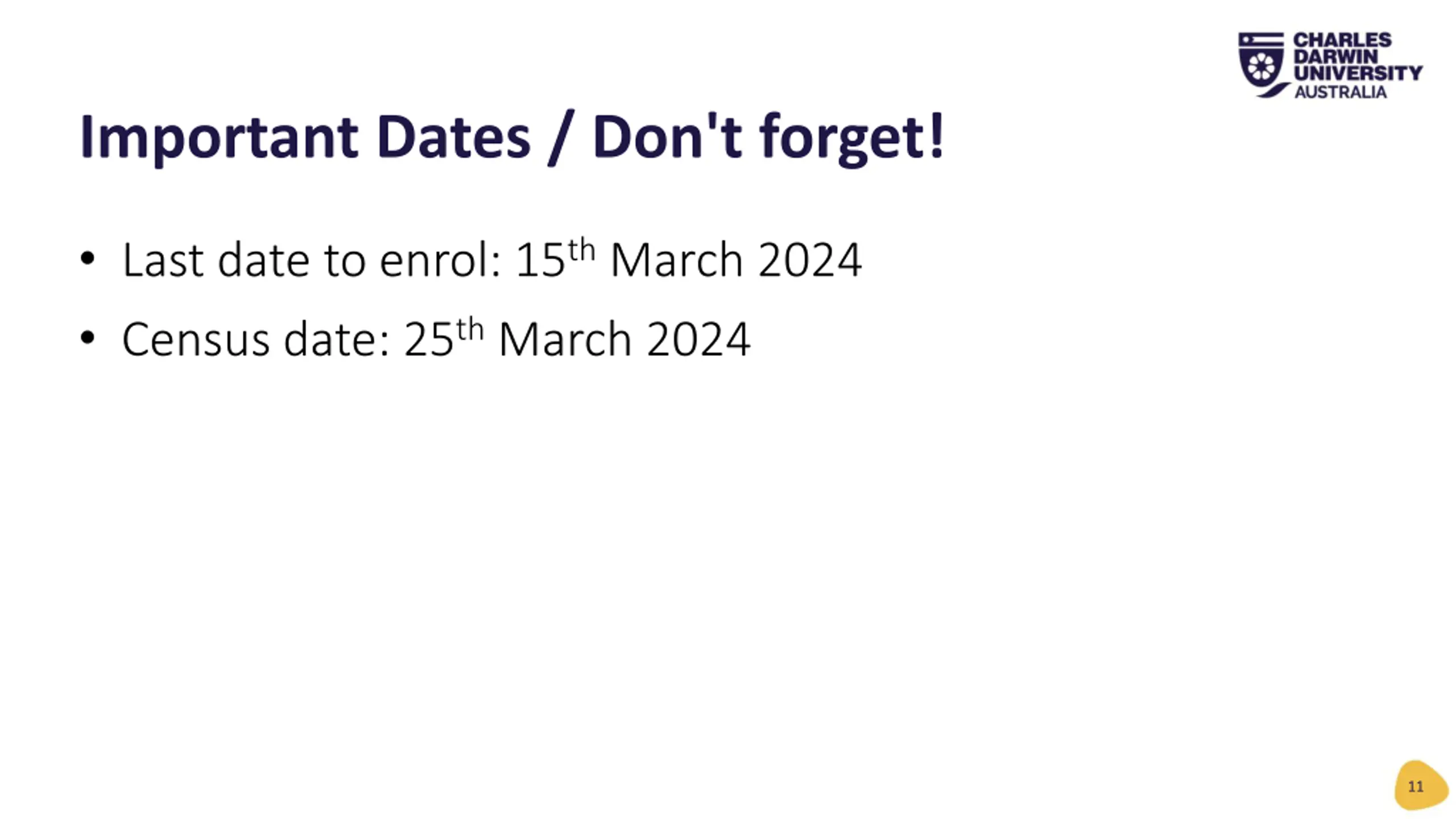 Important Dates / Don't forget! Last date to enrol: 15th March 2024 Census date: 25th March 2024 11
