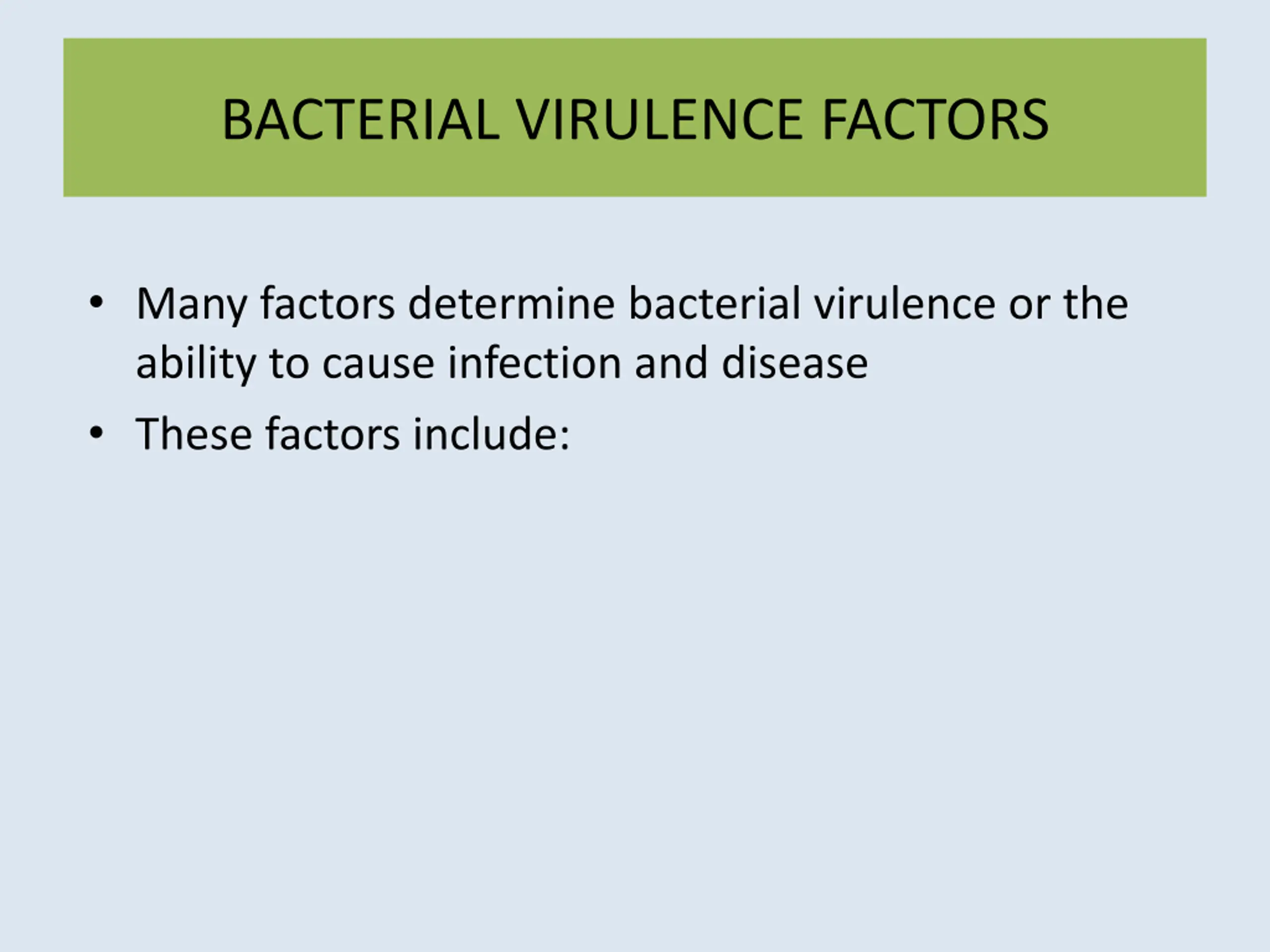 BACTERIAL VIRULENCE FACTORS Many factors determine bacterial virulence or the ability to cause infection and disease These factors include: